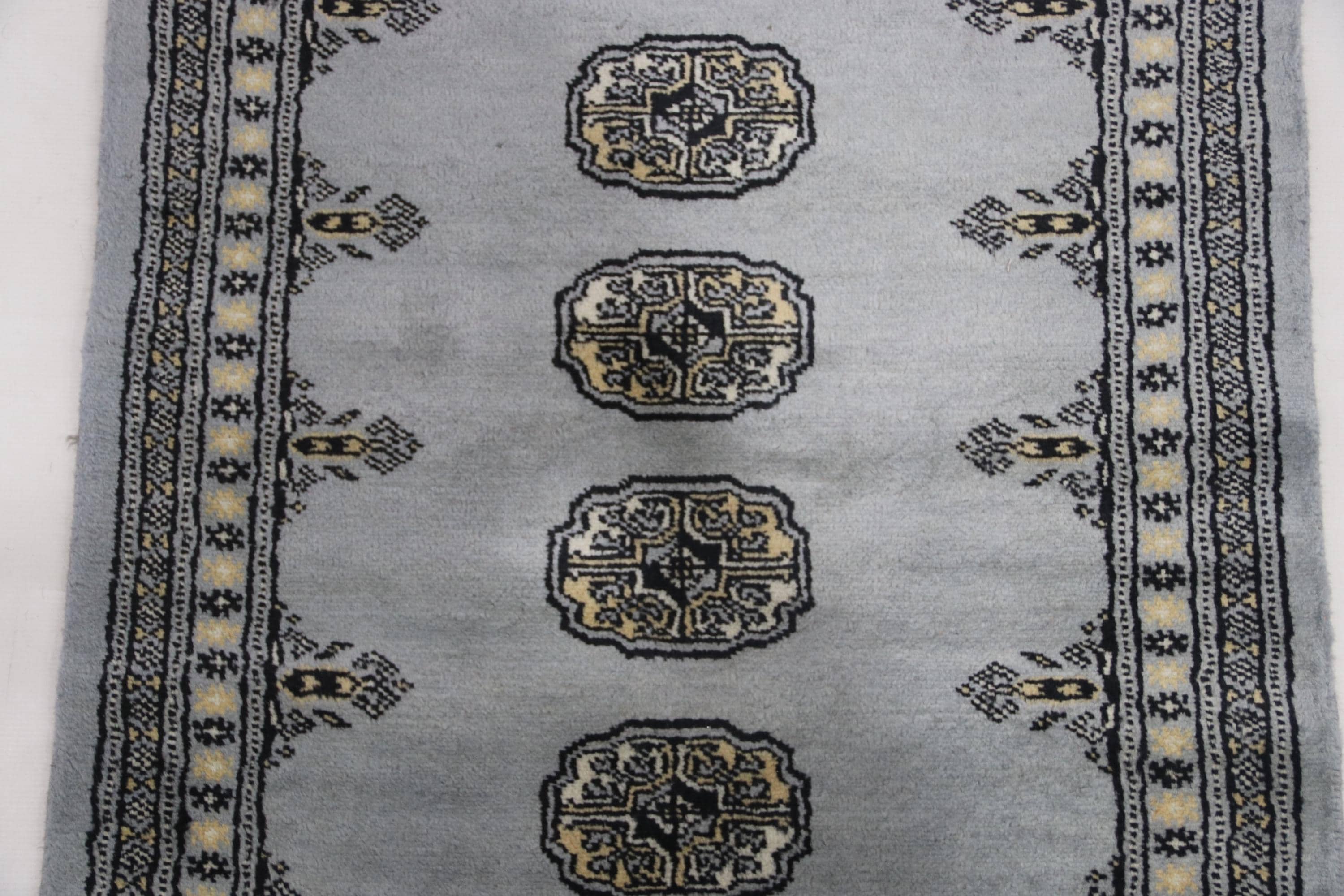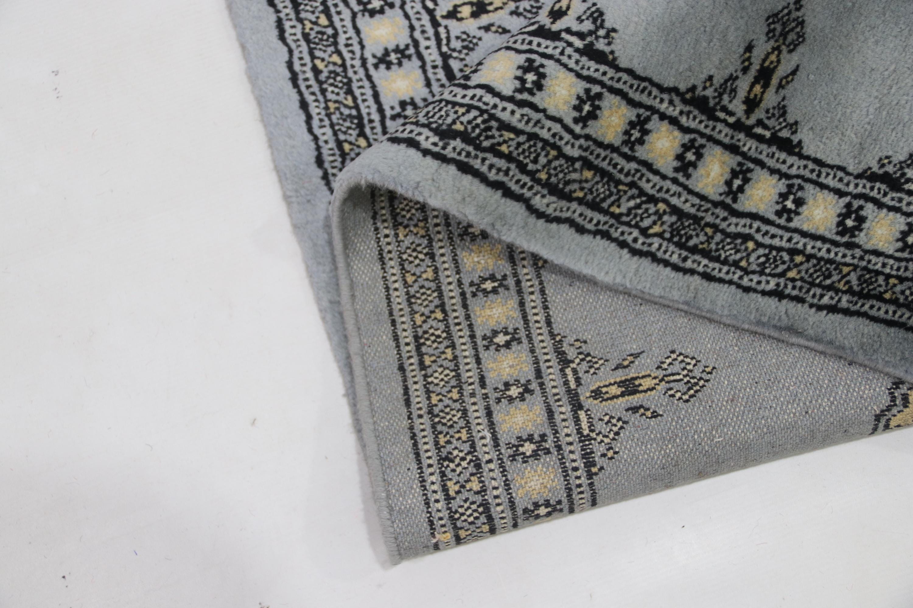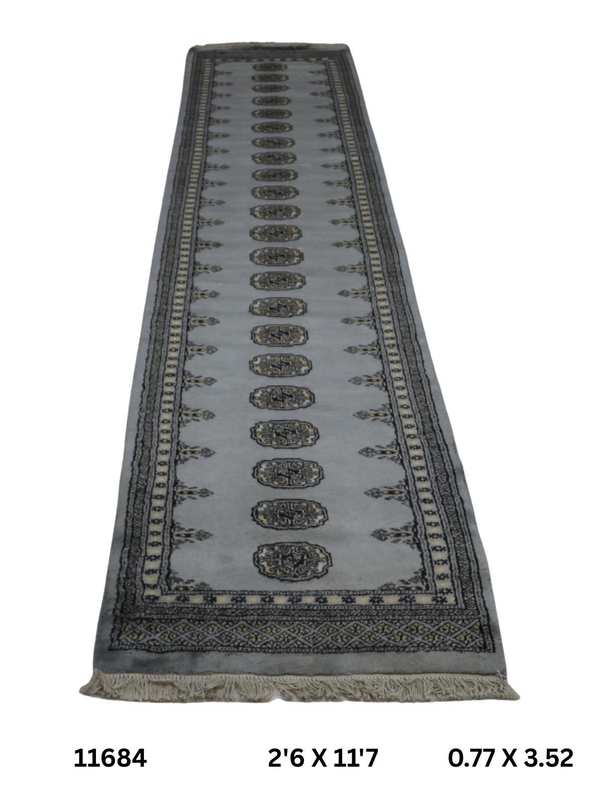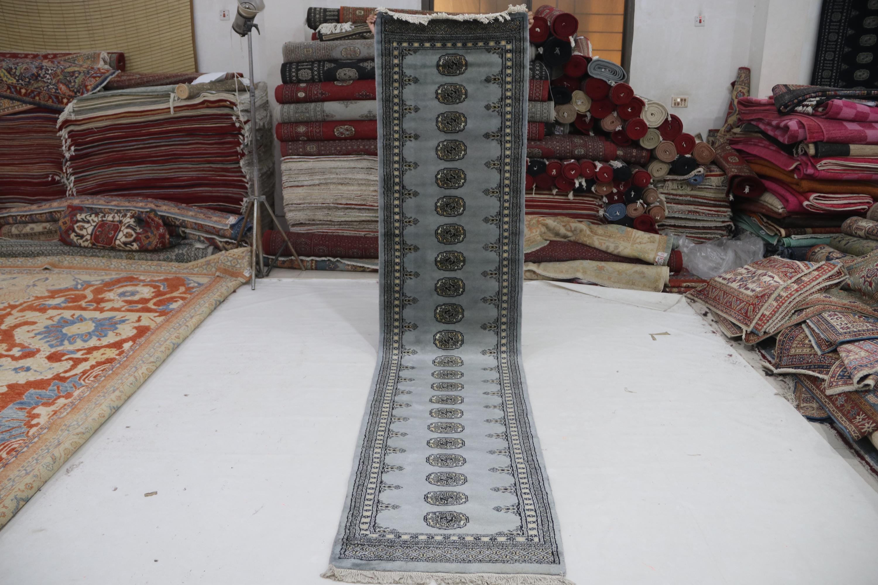 2.6 X 11.7 ft large Mori Bokhara rug, handmade veg dyes Cotton and Wool Rug, Pakhtaun Tribal rug in Gray - Rugs for Living Room