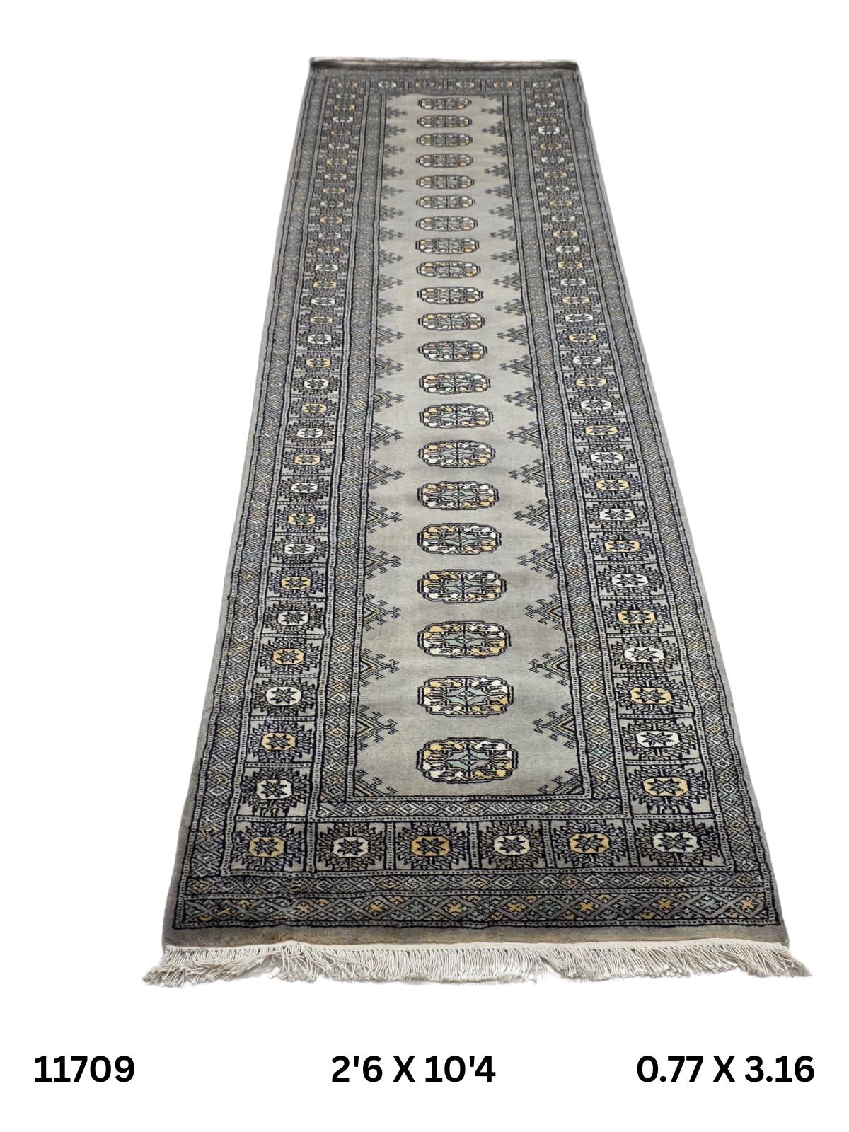 2.6 X 10.4 ft large Mori Bokhara rug, handmade veg dyes Cotton and Wool Rug, Pakhtaun Tribal rug in Gray - Rugs for Living Room