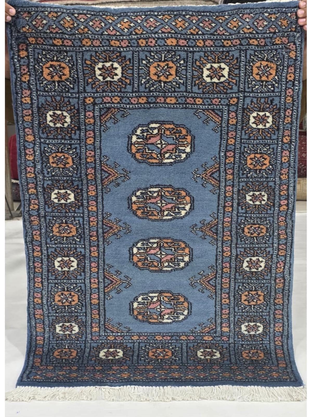 2.1 X 3.1 ft large Mori Bokhara rug, handmade veg dyes Cotton and Wool Rug, Pakhtaun Tribal rug in Blue - Rugs for Living Room