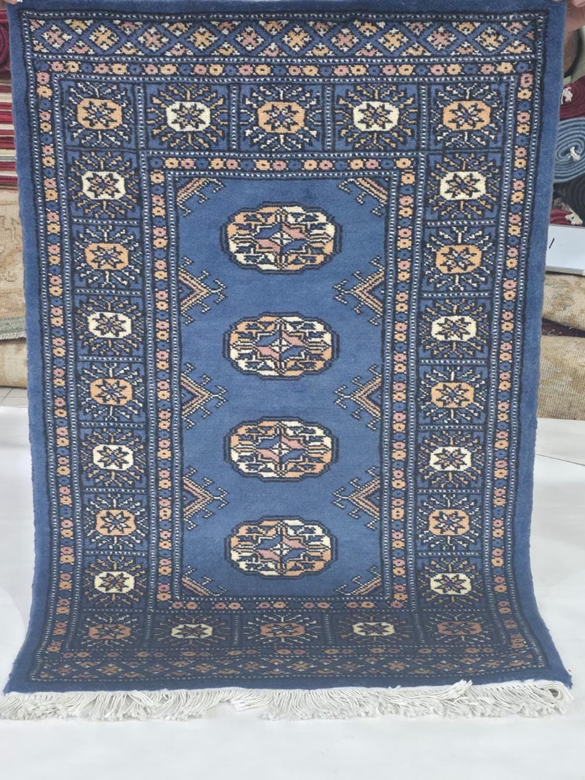 2.1 X 3.0 ft large Mori Bokhara rug, handmade veg dyes Cotton and Wool Rug, Pakhtaun Tribal rug in Blue - Rugs for Living Room