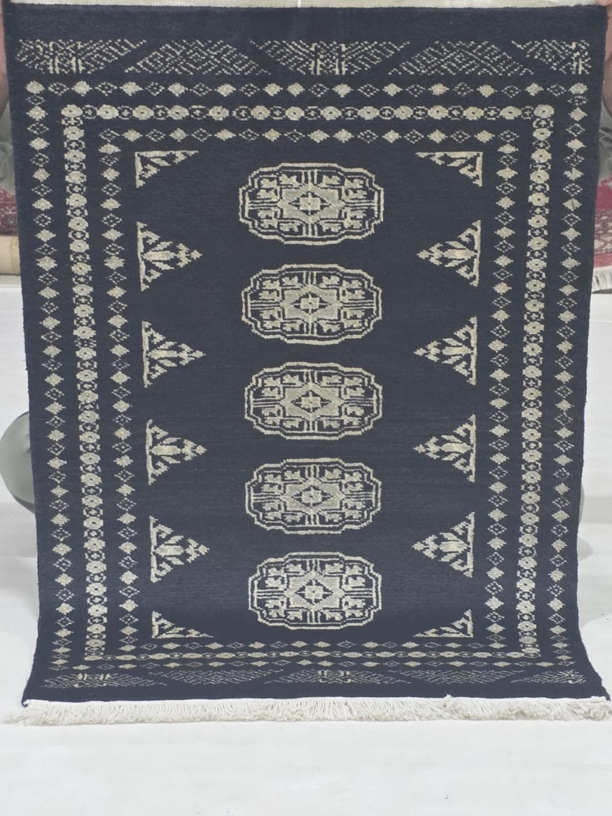 2.1 X 2.11 ft large Mori Bokhara rug, handmade veg dyes Cotton and Wool Rug, Pakhtaun Tribal rug in Black - Rugs for Living Room
