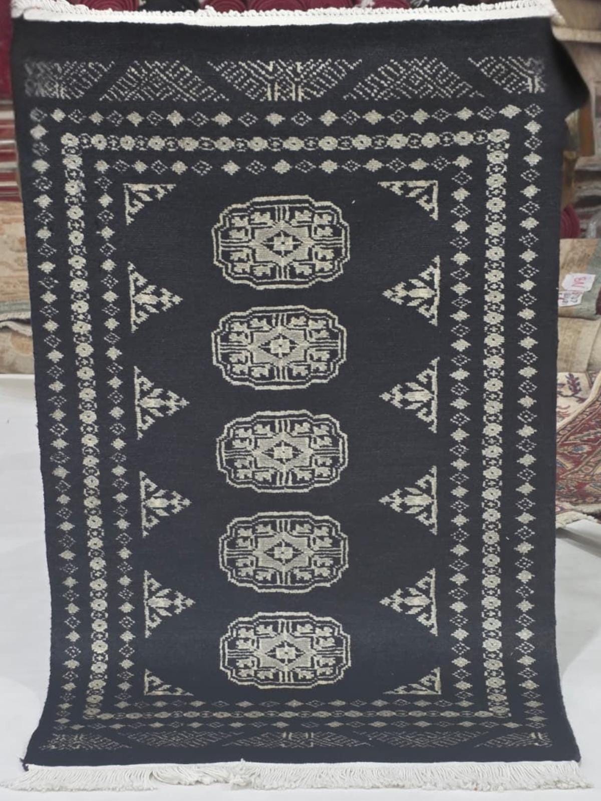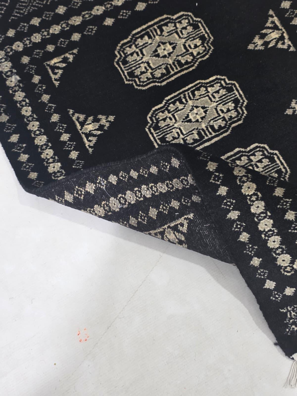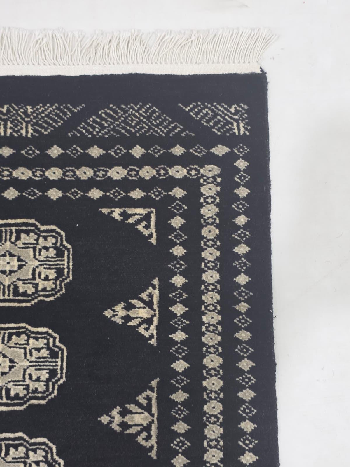 2.1 X 3.1 ft large Mori Bokhara rug, handmade veg dyes Cotton and Wool Rug, Pakhtaun Tribal rug in Black - Rugs for Living Room