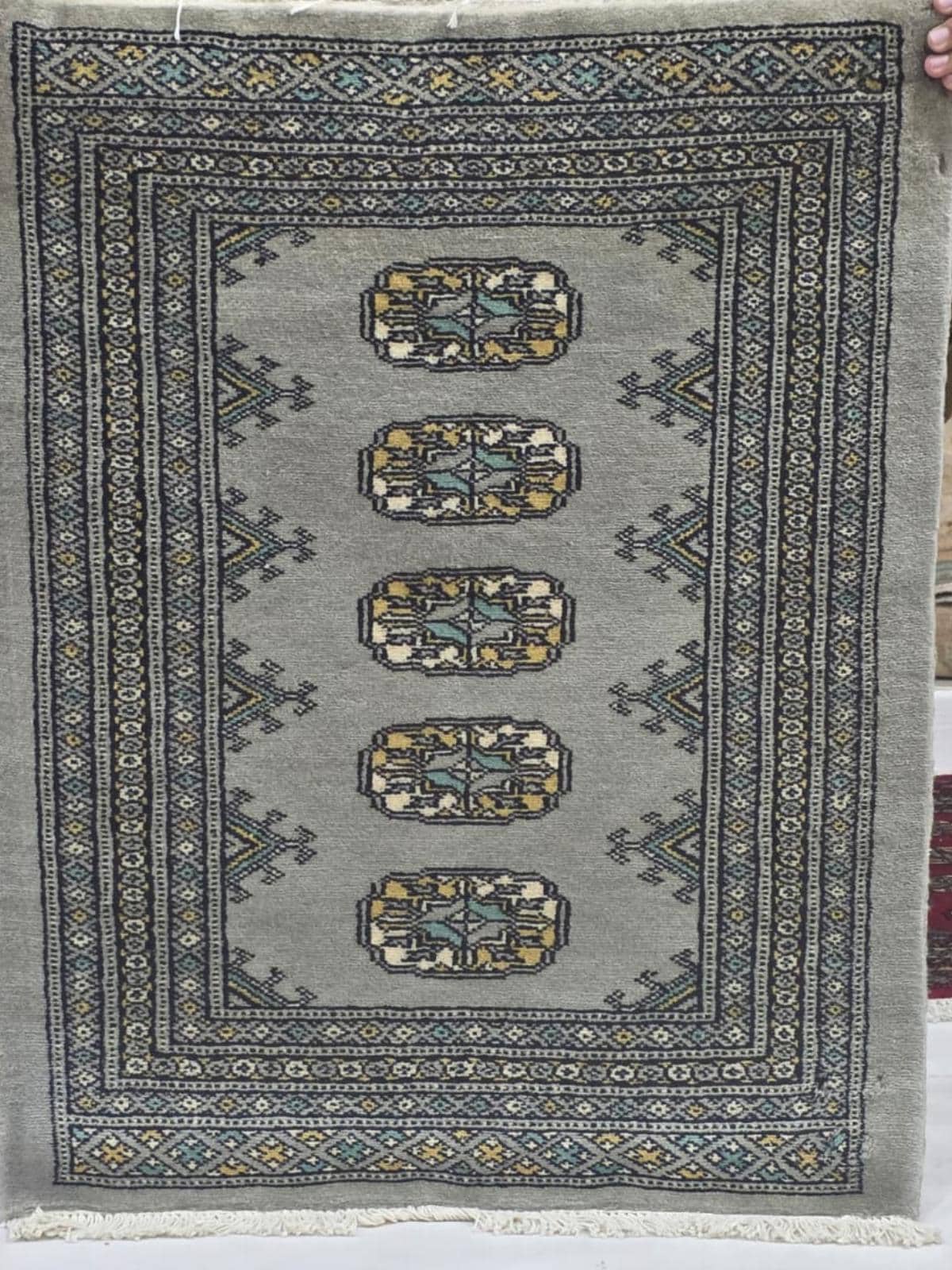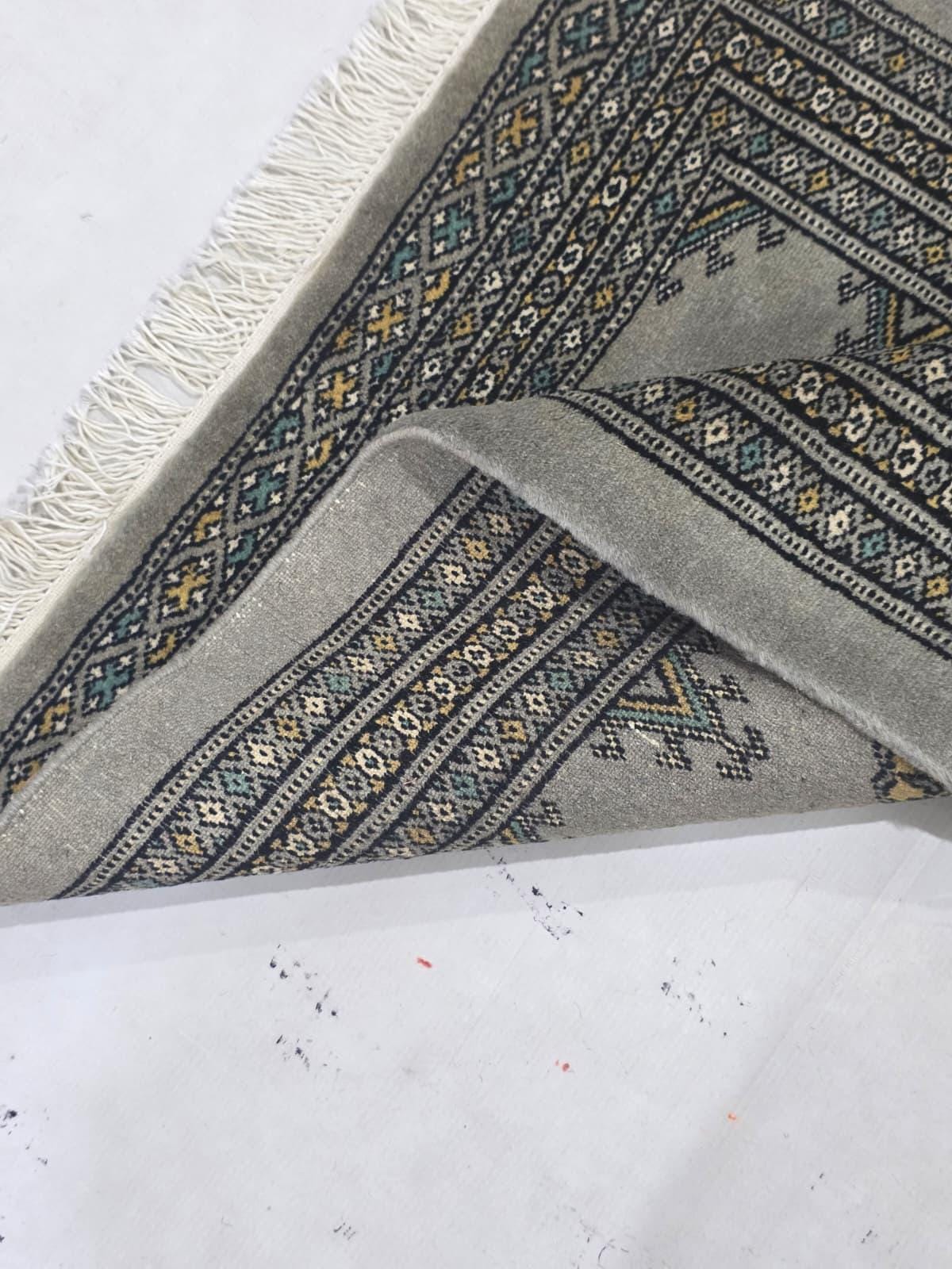 2.1 X 2.8 ft large Mori Bokhara rug, handmade veg dyes Cotton and Wool Rug, Pakhtaun Tribal rug in Gray - Rugs for Living Room