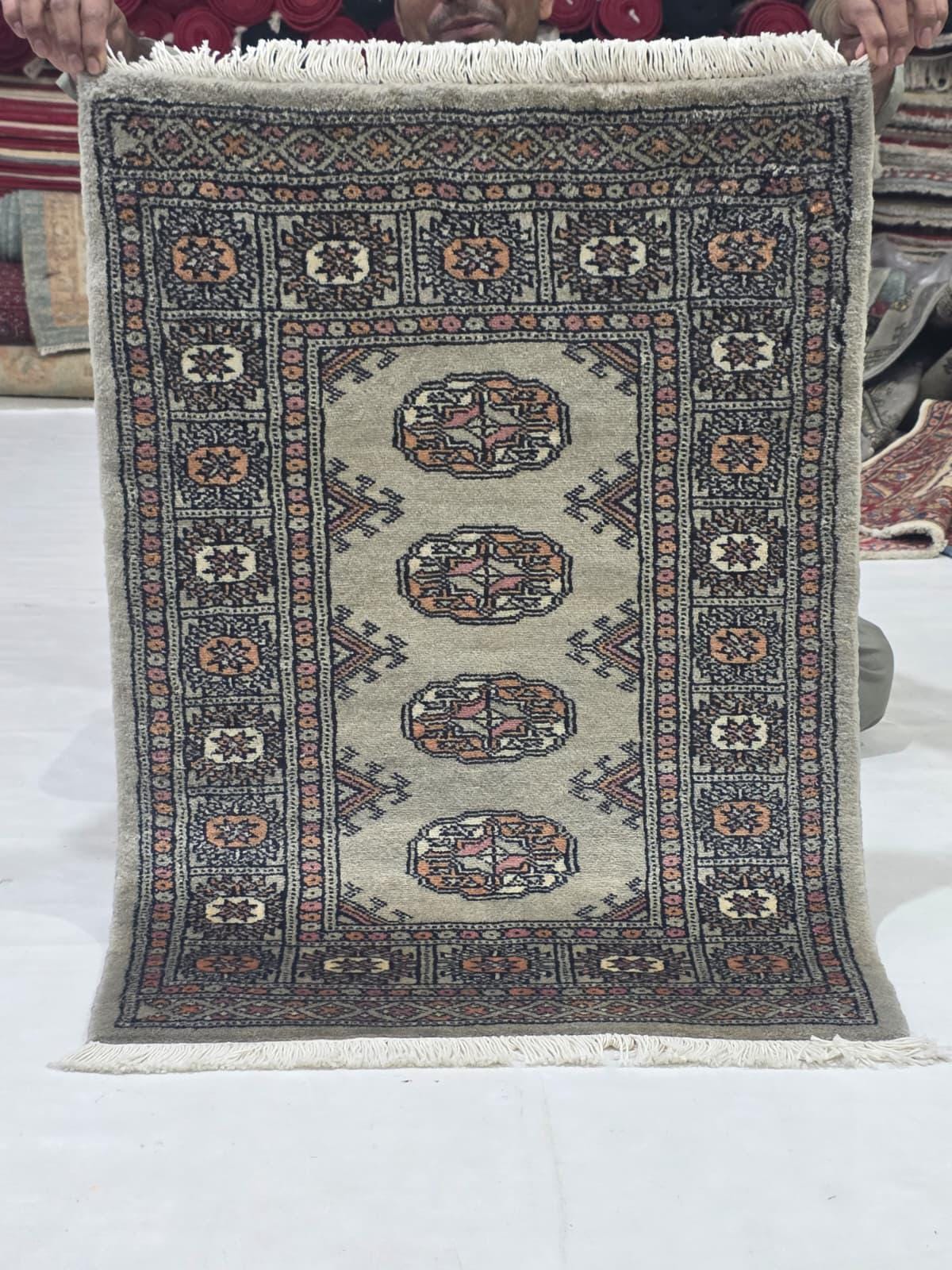 2.1 X 2.10 ft large Mori Bokhara rug, handmade veg dyes Cotton and Wool Rug, Pakhtaun Tribal rug in Gray - Rugs for Living Room