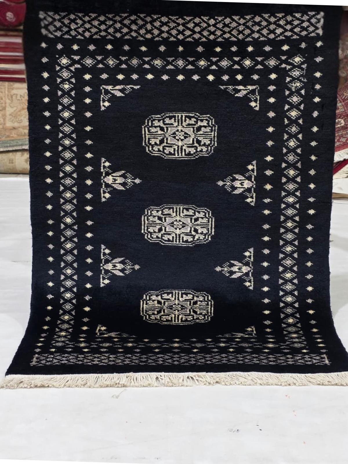 2.1 X3.1 ft large Mori Bokhara rug, handmade veg dyes Cotton and Wool Rug, Pakhtaun Tribal rug in Black - Rugs for Living Room