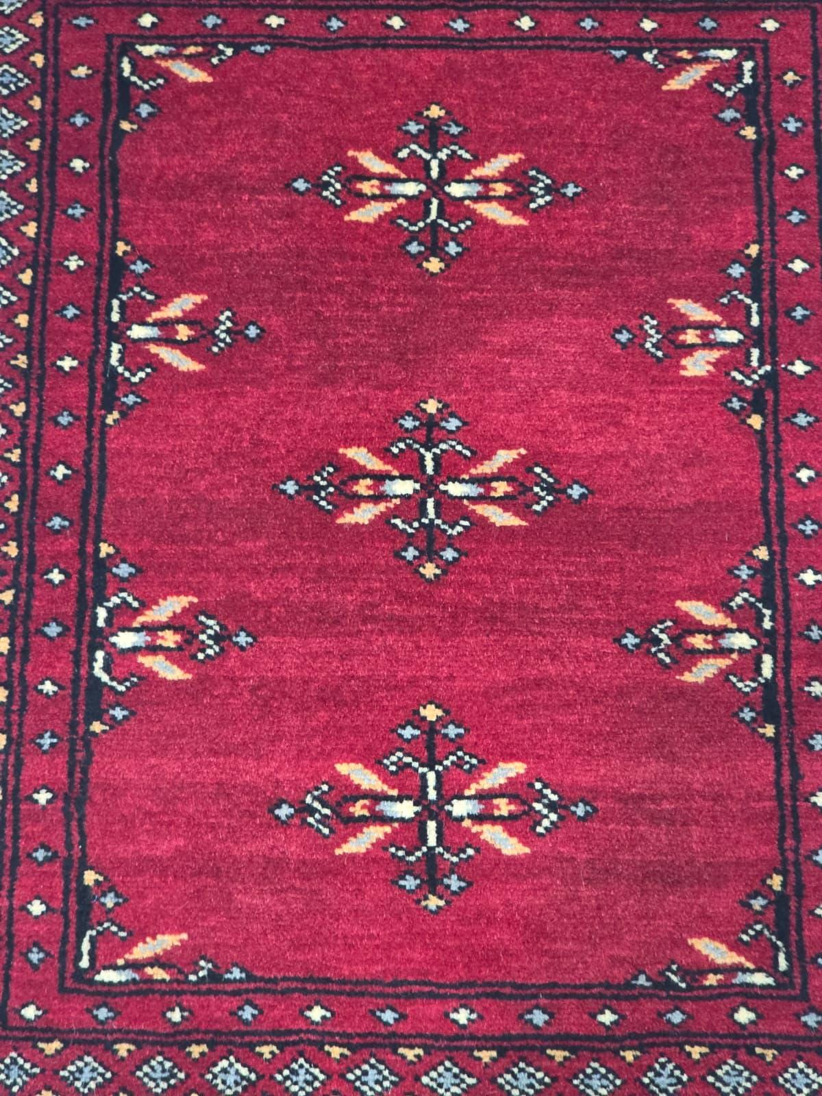 2.1 X 3.1 ft large Mori Bokhara rug, handmade veg dyes Cotton and Wool Rug, Pakhtaun Tribal rug in Red - Rugs for Living Room