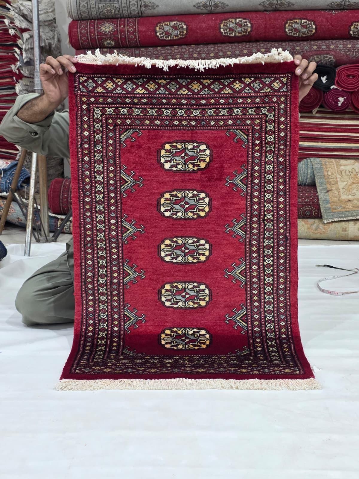 2.1 X 3.2 ft large Mori Bokhara rug, handmade veg dyes Cotton and Wool Rug, Pakhtaun Tribal rug in Red - Rugs for Living Room