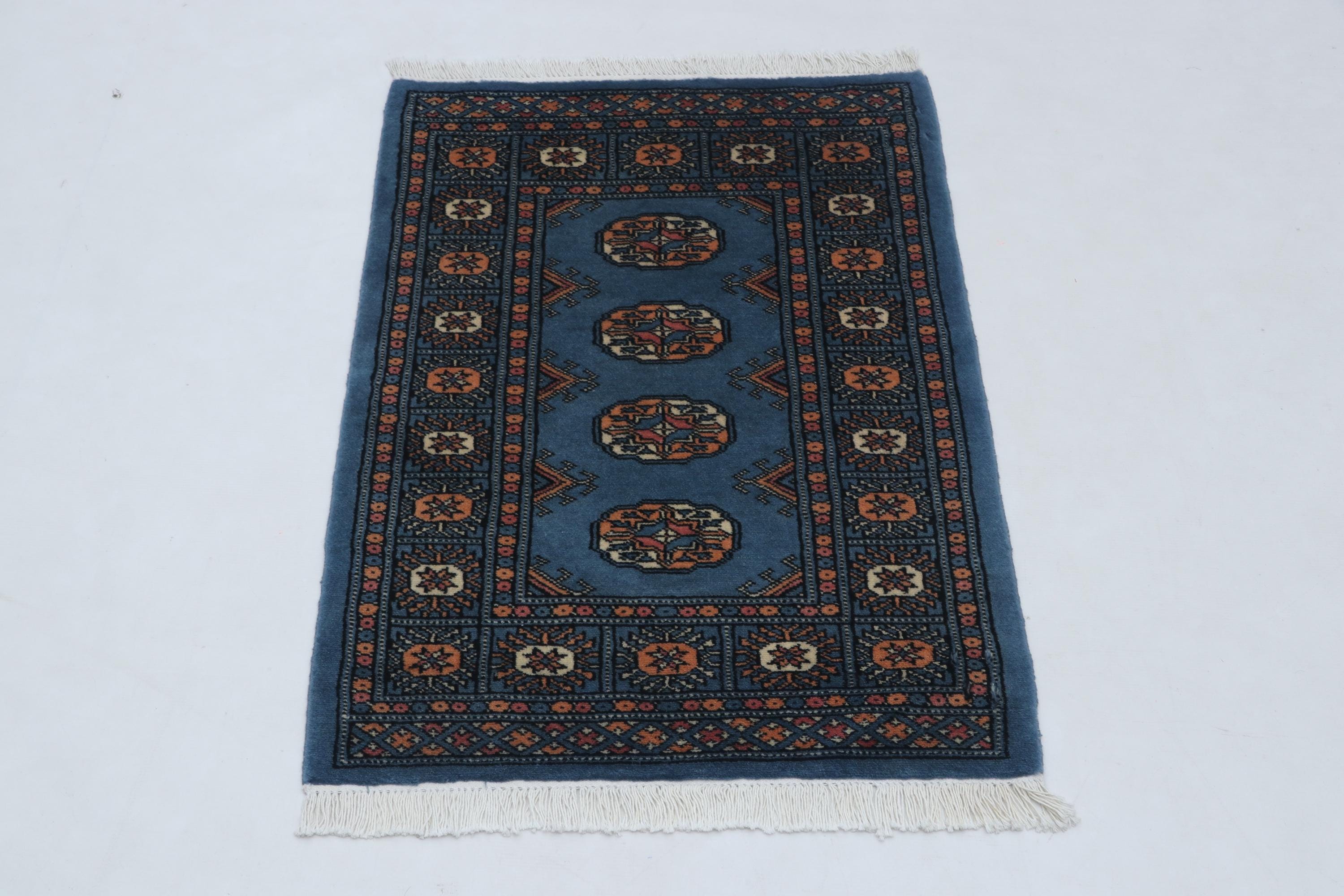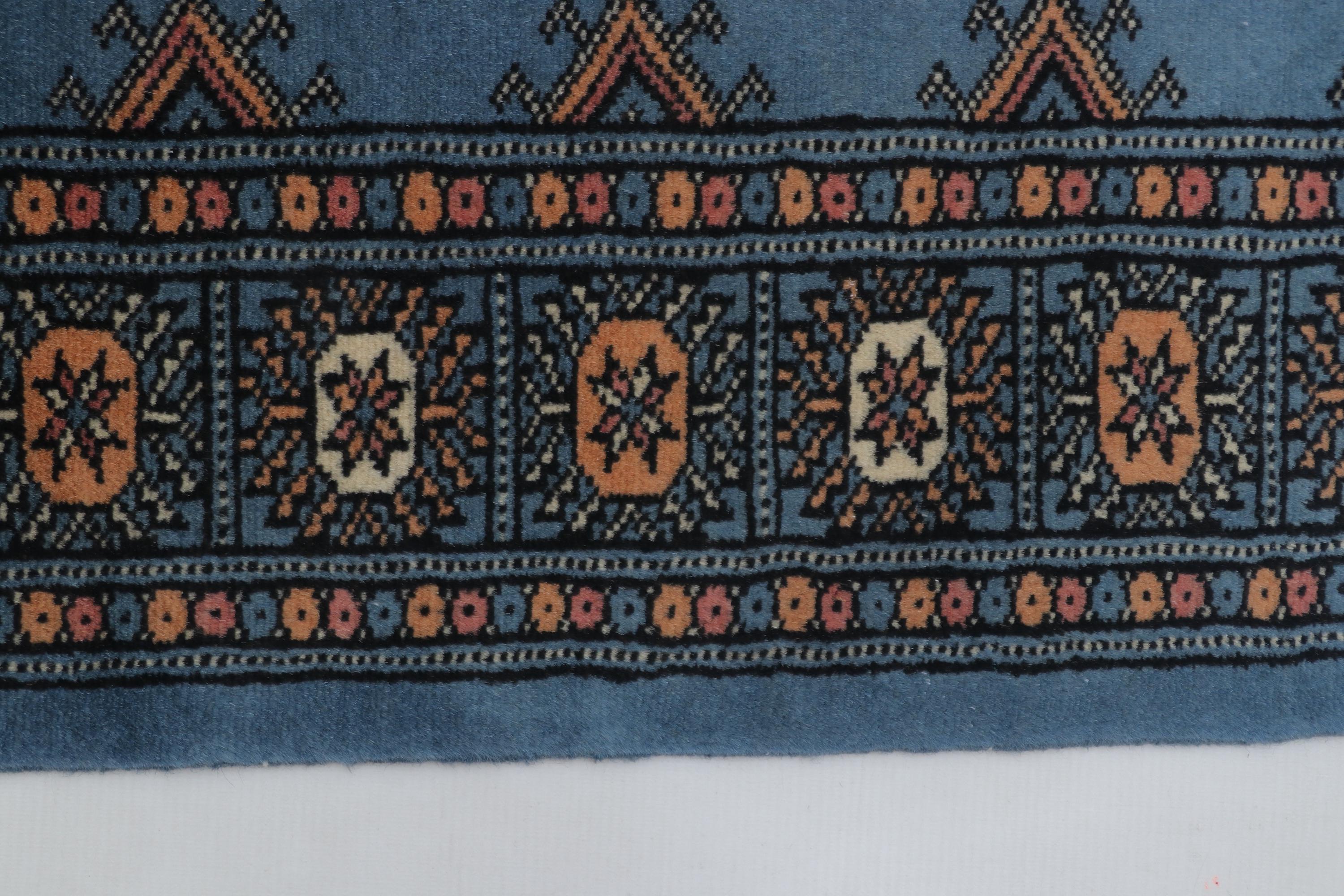 2.2 X 3.1 ft large Mori Bokhara rug, handmade veg dyes Cotton and Wool Rug, Pakhtaun Tribal rug in Blue - Rugs for Living Room