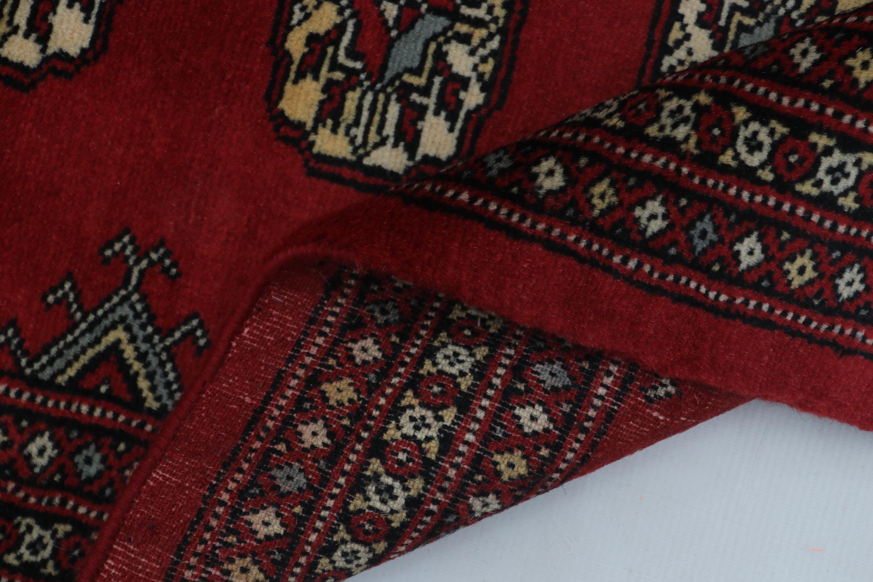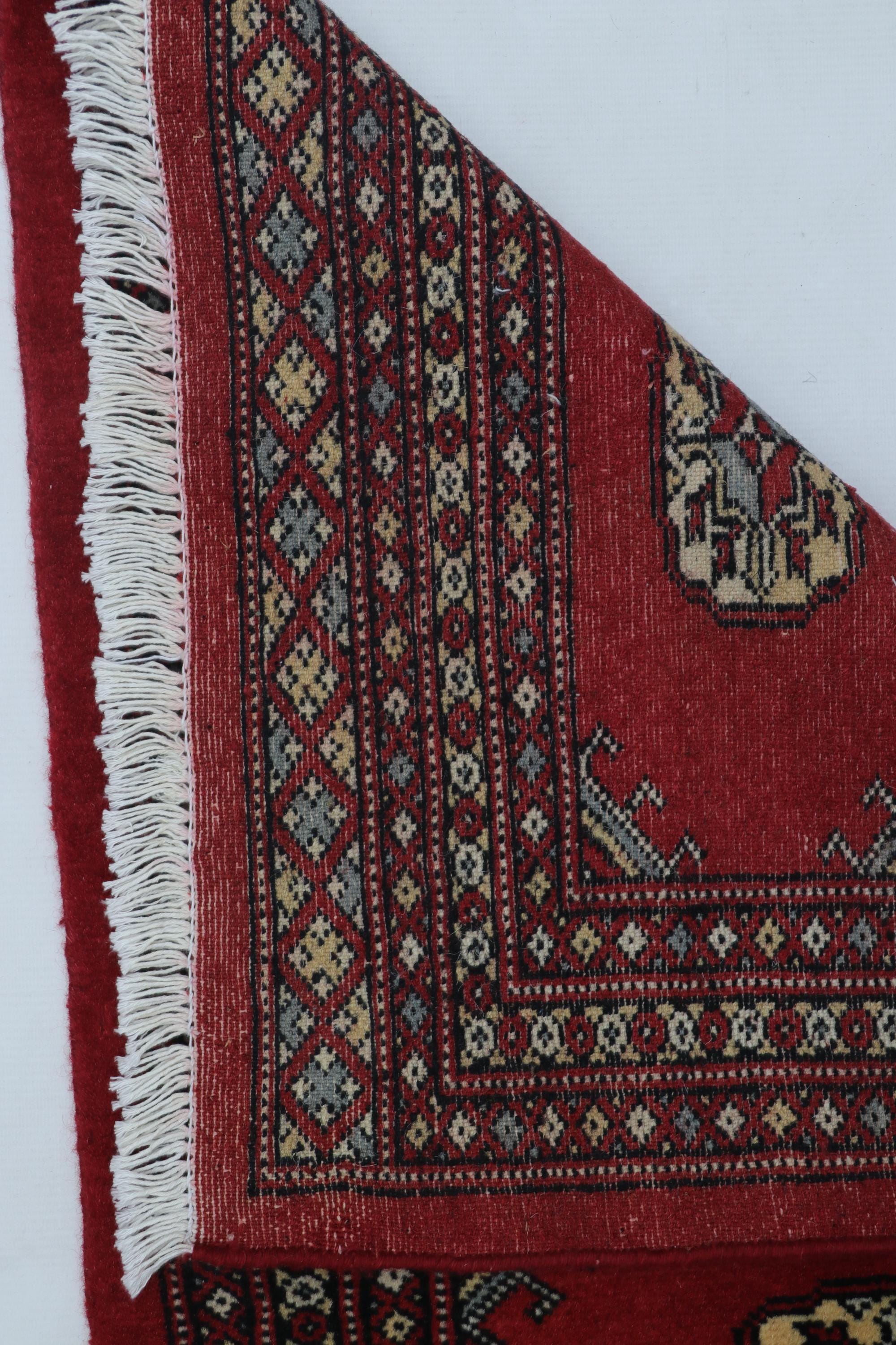 2.1 X 3.4 ft large Mori Bokhara rug, handmade veg dyes Cotton and Wool Rug, Pakhtaun Tribal rug in Red - Rugs for Living Room