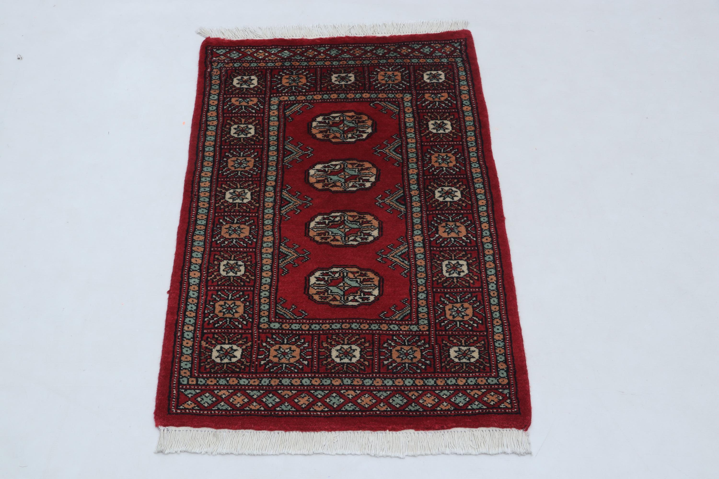 2.0 X 3.0 ft large Mori Bokhara rug, handmade veg dyes Cotton and Wool Rug, Pakhtaun Tribal rug in Red - Rugs for Living Room