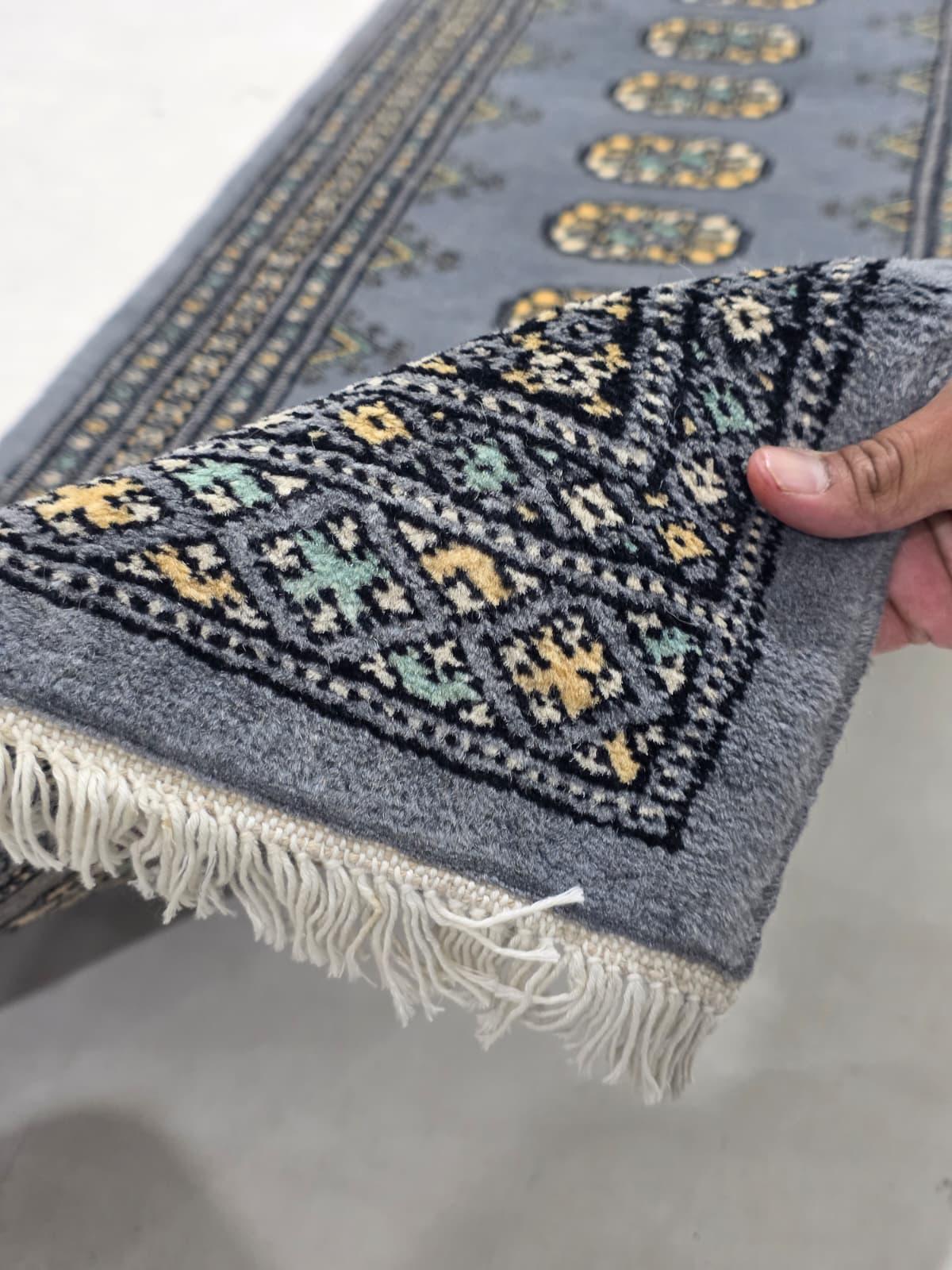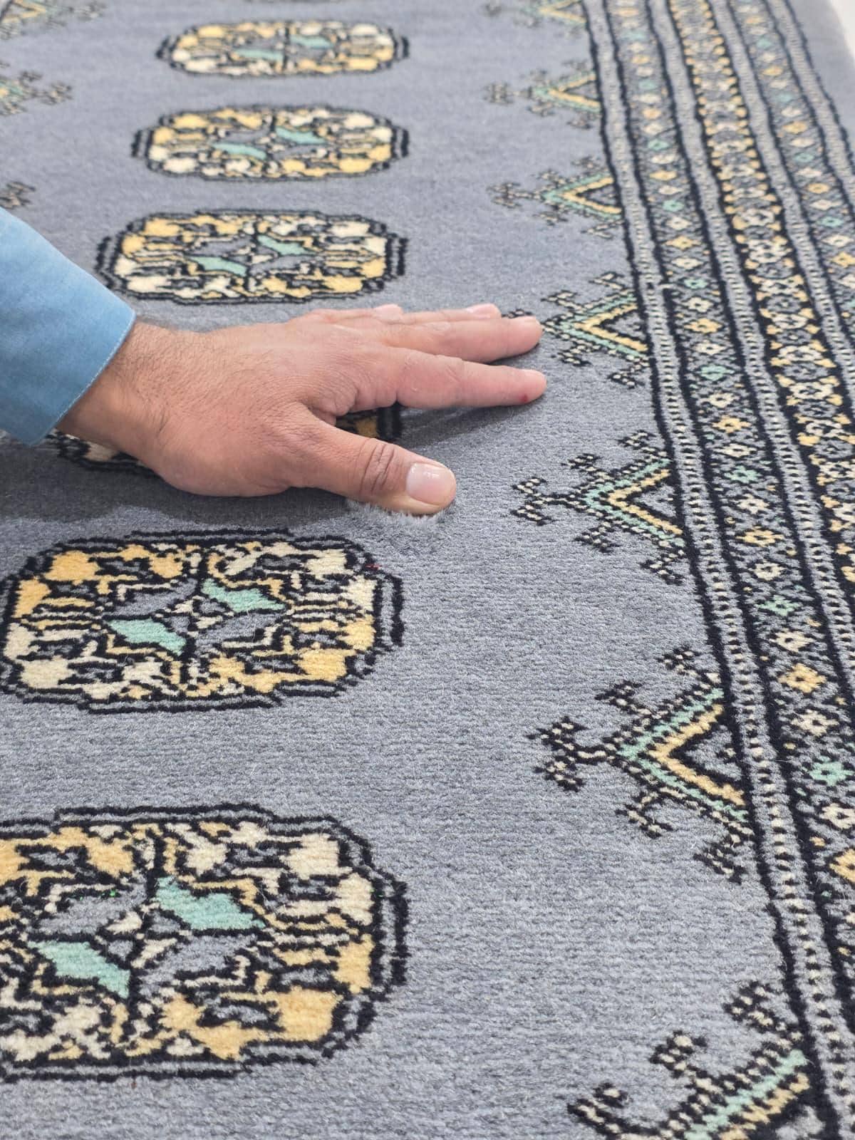 3.1 X 5.10 ft large Mori Bokhara rug, handmade veg dyes Cotton and Wool Rug, Pakhtaun Tribal rug in Gray - Rugs for Living Room