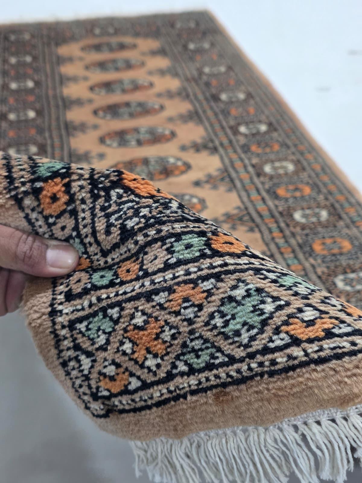 2.1 X 5.10 ft large Mori Bokhara rug, handmade veg dyes Cotton and Wool Rug, Pakhtaun Tribal rug in Brown - Rugs for Living Room
