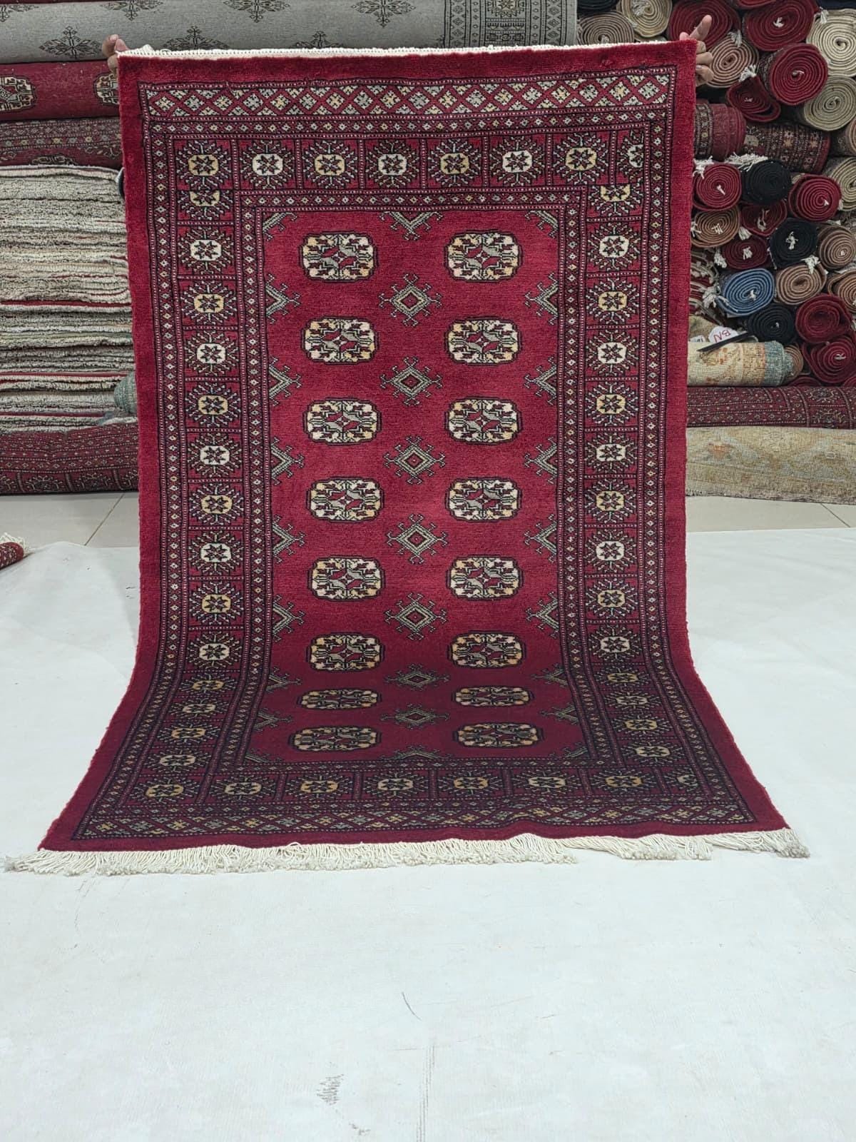 3.3 X 5.5 ft large Mori Bokhara rug, handmade veg dyes Cotton and Wool Rug, Pakhtaun Tribal rug in Red - Rugs for Living Room