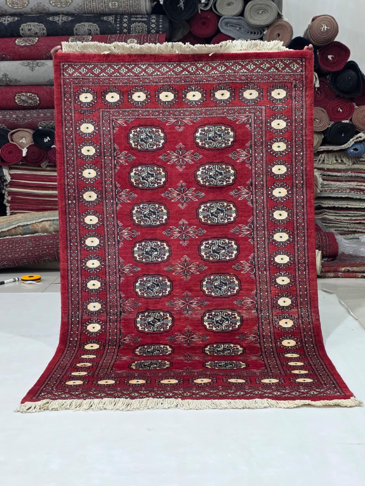3.1 X 5.2 ft large Mori Bokhara rug, handmade veg dyes Cotton and Wool Rug, Pakhtaun Tribal rug in Red - Rugs for Living Room
