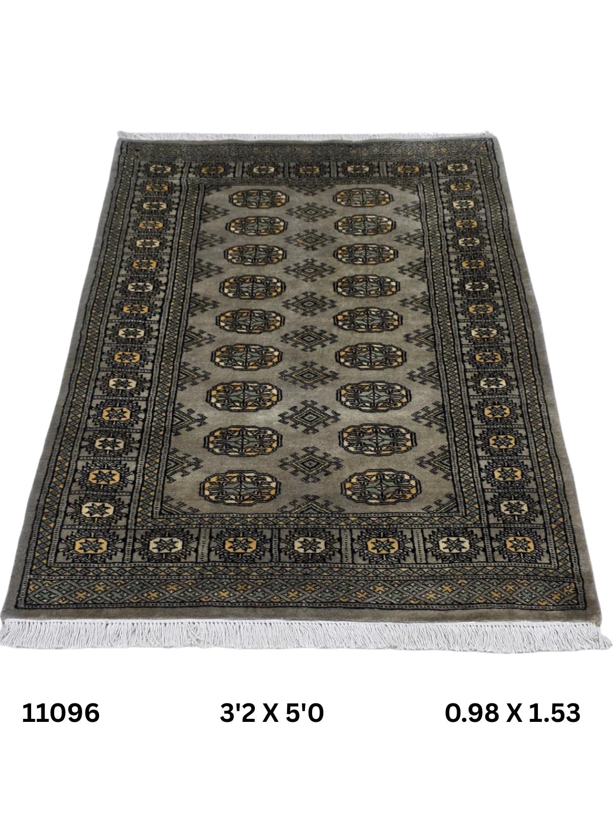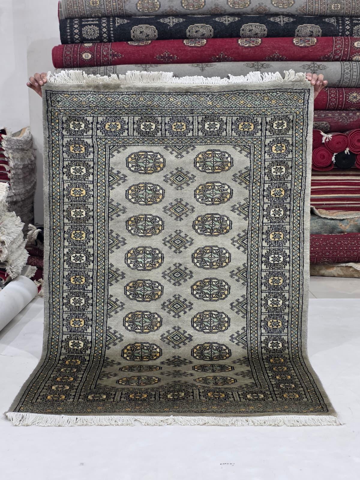 3.2 X 5.0 ft large Mori Bokhara rug, handmade veg dyes Cotton and Wool Rug, Pakhtaun Tribal rug in Gray - Rugs for Living Room