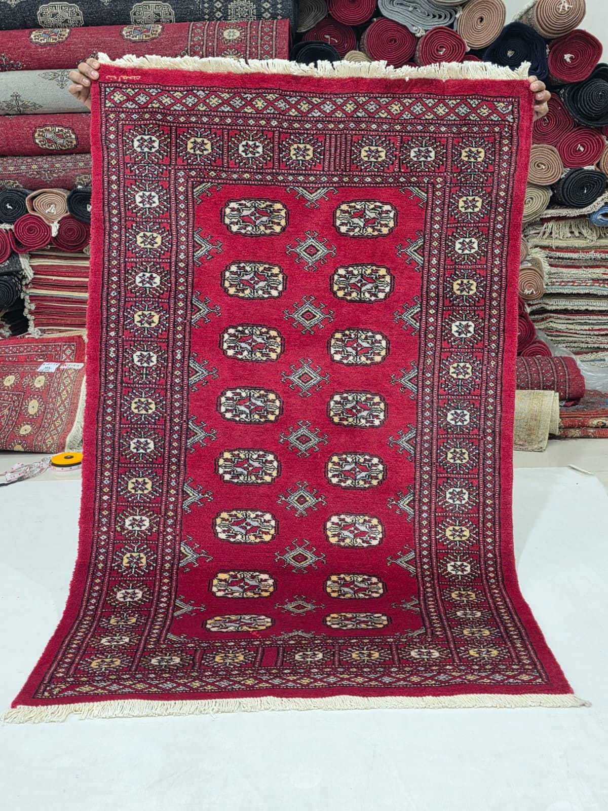 3.1 X 5.0 ft large Mori Bokhara rug, handmade veg dyes Cotton and Wool Rug, Pakhtaun Tribal rug in Red - Rugs for Living Room