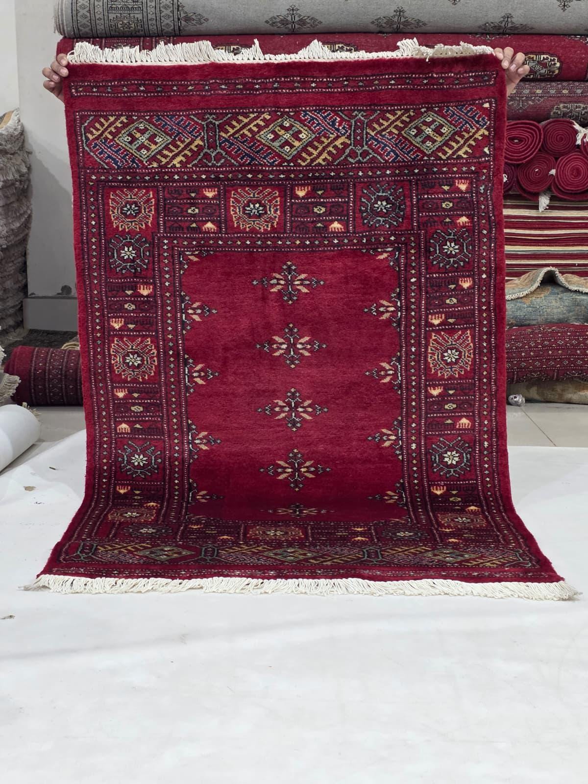 3.0 X 4.8 ft large Mori Bokhara rug, handmade veg dyes Cotton and Wool Rug, Pakhtaun Tribal rug in Red - Rugs for Living Room