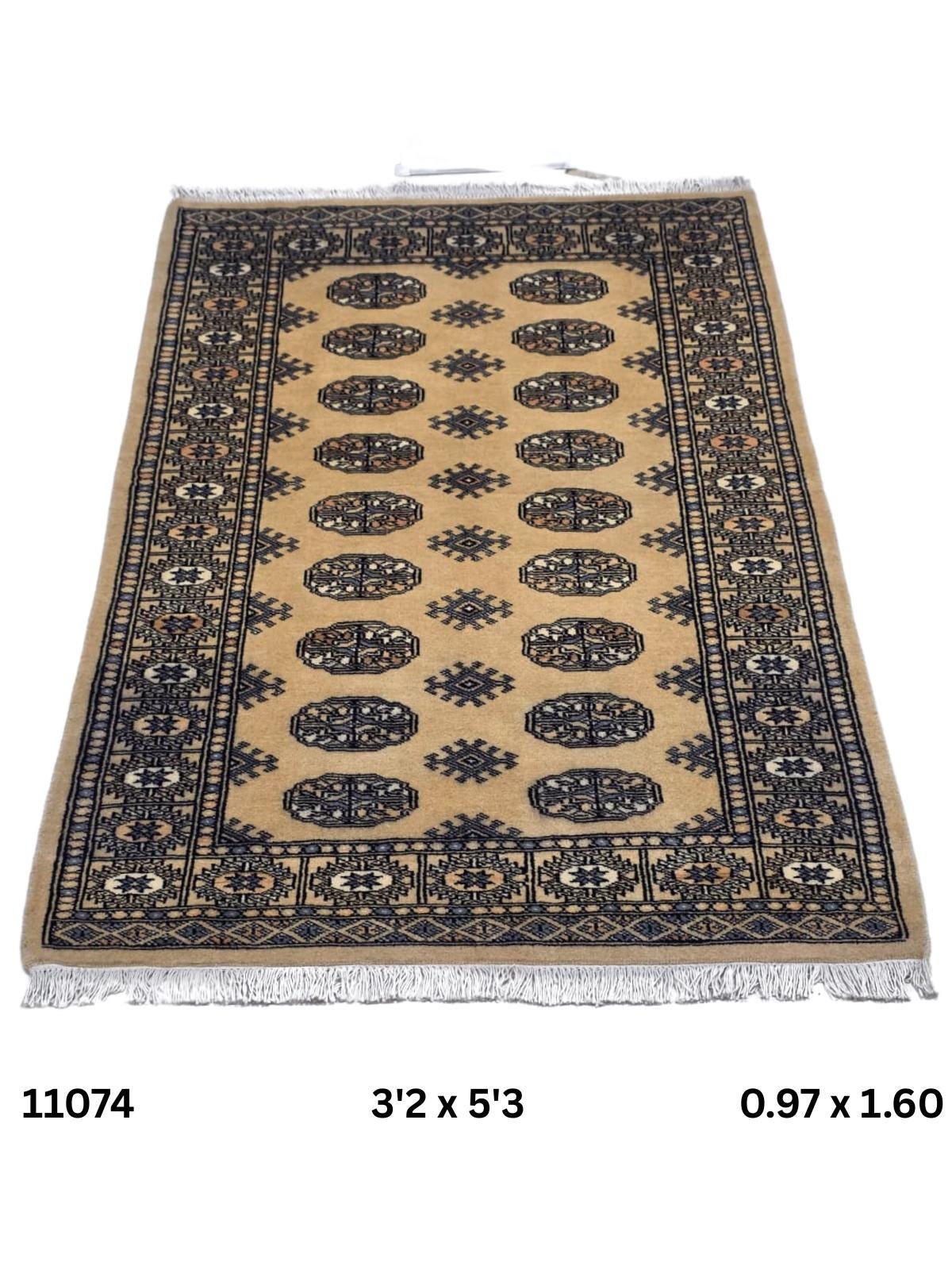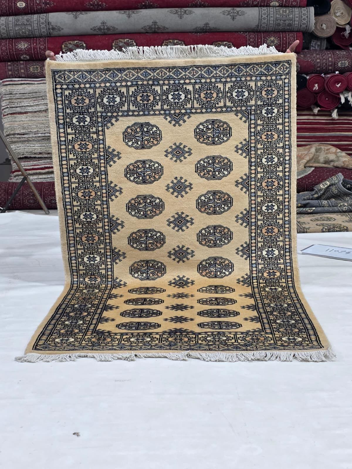 3.2 X 5.3 ft large Mori Bokhara rug, handmade veg dyes Cotton and Wool Rug, Pakhtaun Tribal rug in Beige - Rugs for Living Room