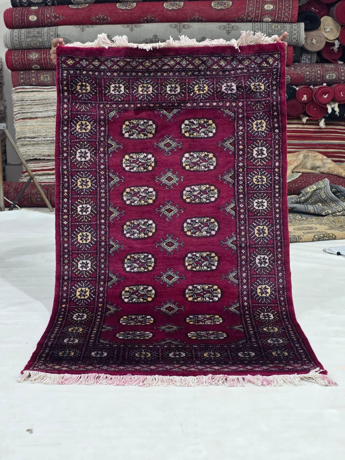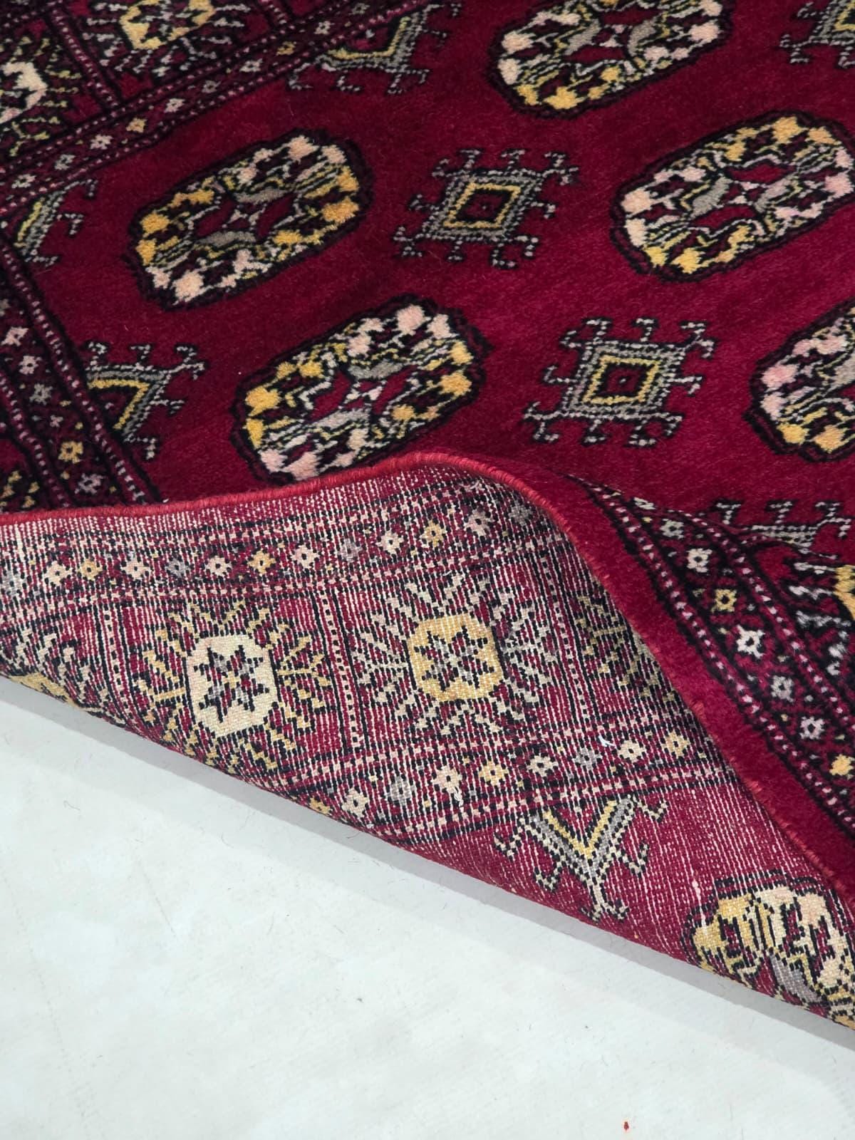 2.10 X 4.10 ft large Mori Bokhara rug, handmade veg dyes Cotton and Wool Rug, Pakhtaun Tribal rug in Red - Rugs for Living Room