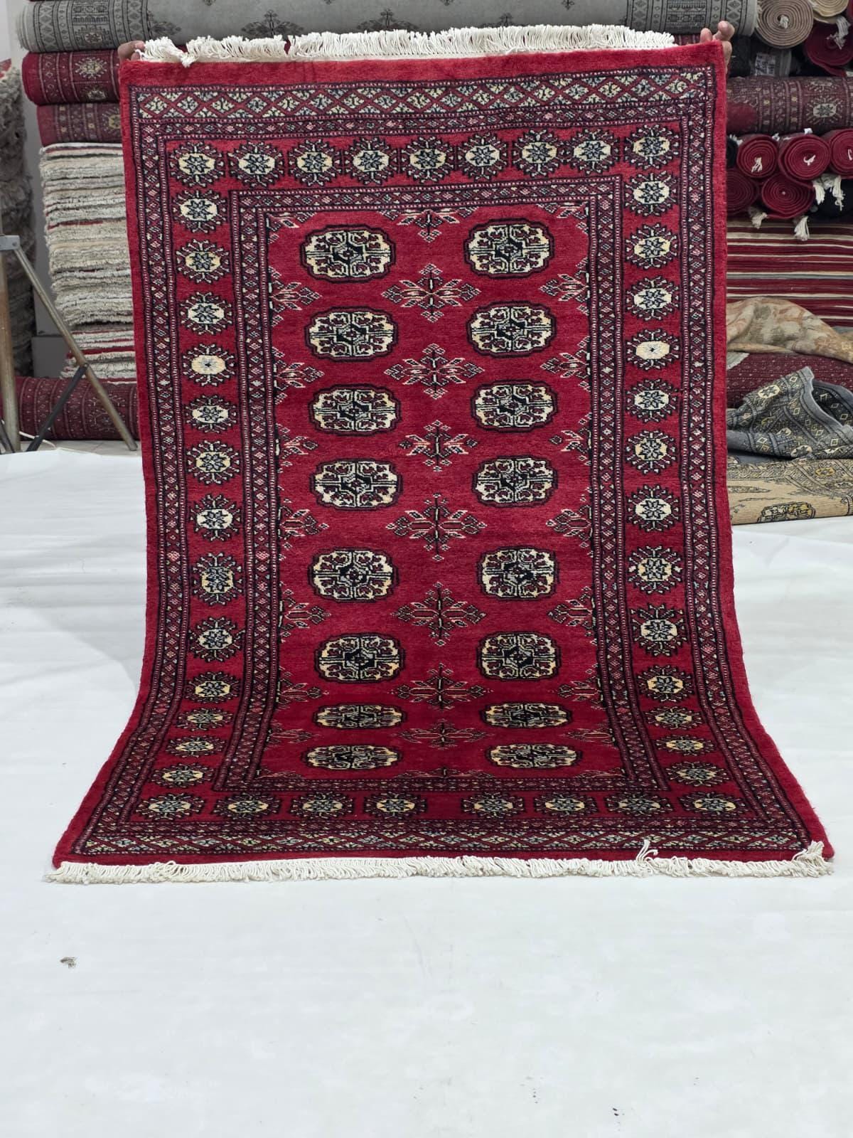 3.1 X 5.2 ft large Mori Bokhara rug, handmade veg dyes Cotton and Wool Rug, Pakhtaun Tribal rug in Red - Rugs for Living Room