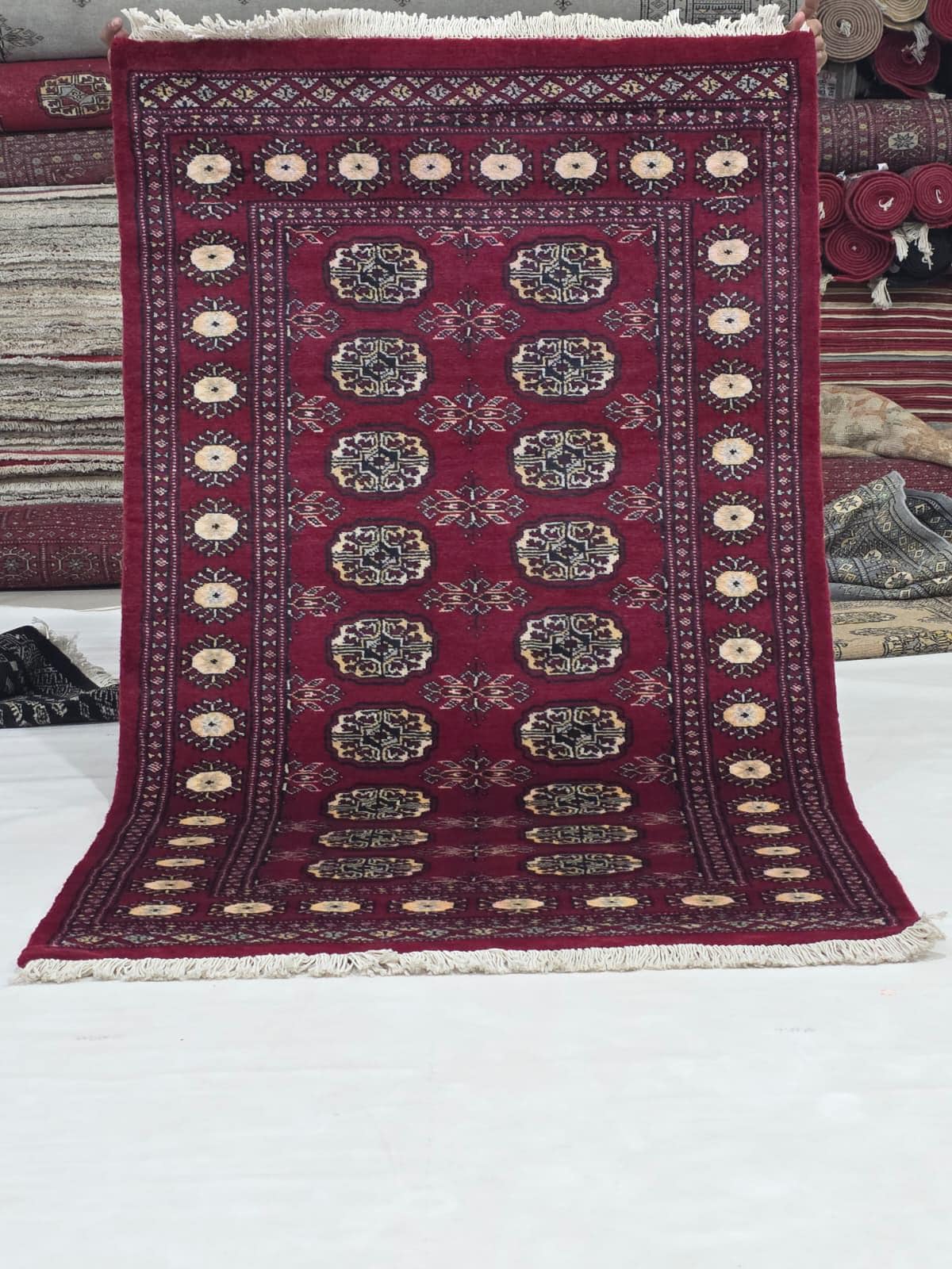 3.2 X 5.5 ft large Mori Bokhara rug, handmade veg dyes Cotton and Wool Rug, Pakhtaun Tribal rug in Red - Rugs for Living Room