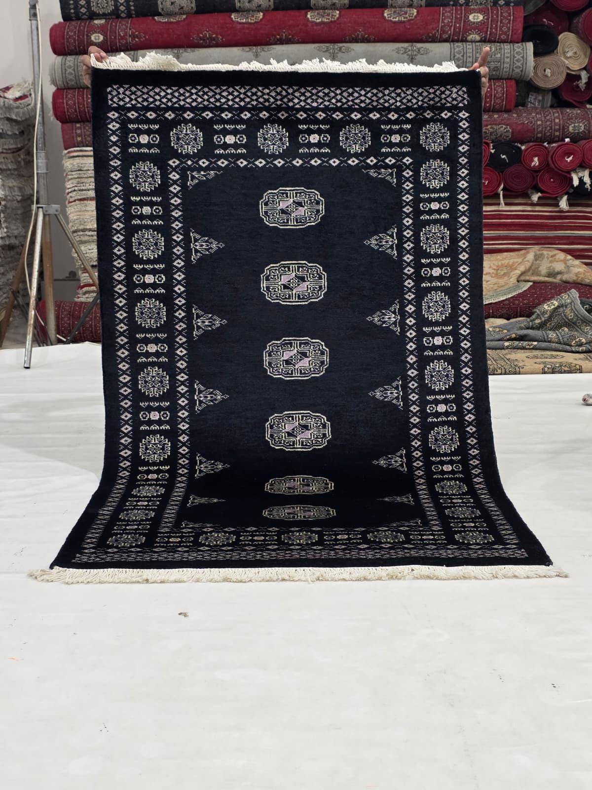 3.1 X 5.0 ft large Mori Bokhara rug, handmade veg dyes Cotton and Wool Rug, Pakhtaun Tribal rug in Black - Rugs for Living Room
