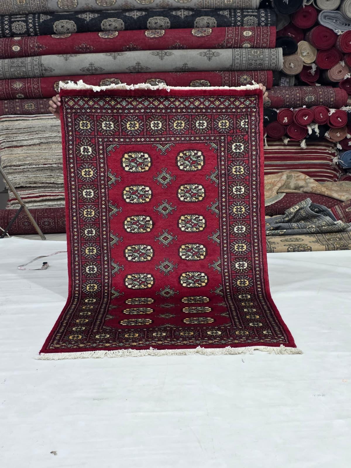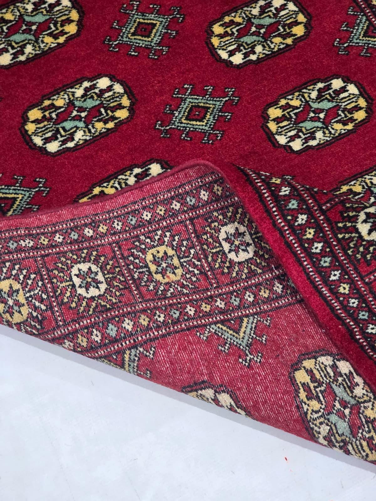 3.0 X 5.2 ft large Mori Bokhara rug, handmade veg dyes Cotton and Wool Rug, Pakhtaun Tribal rug in Red - Rugs for Living Room