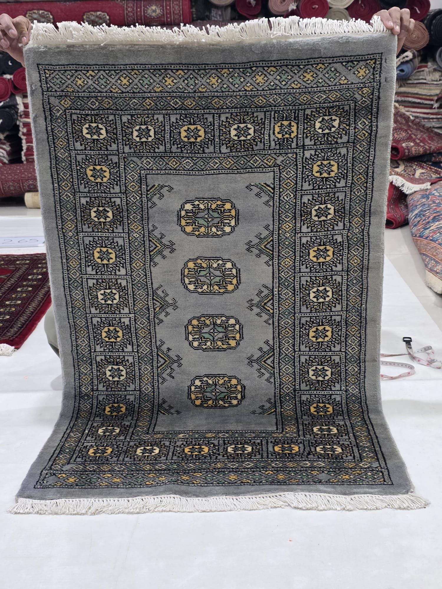 2.5 X 3.11 ft large Mori Bokhara rug, handmade veg dyes Cotton and Wool Rug, Pakhtaun Tribal rug in Gray - Rugs for Living Room