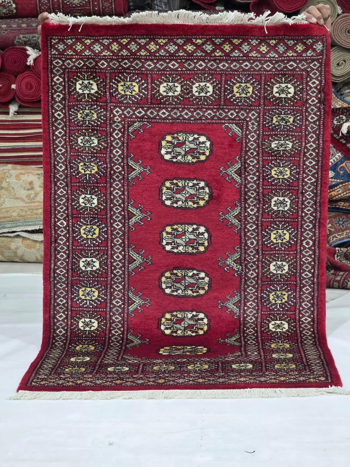 2.6 X 3.11 ft large Mori Bokhara rug, handmade veg dyes Cotton and Wool Rug, Pakhtaun Tribal rug in Red - Rugs for Living Room