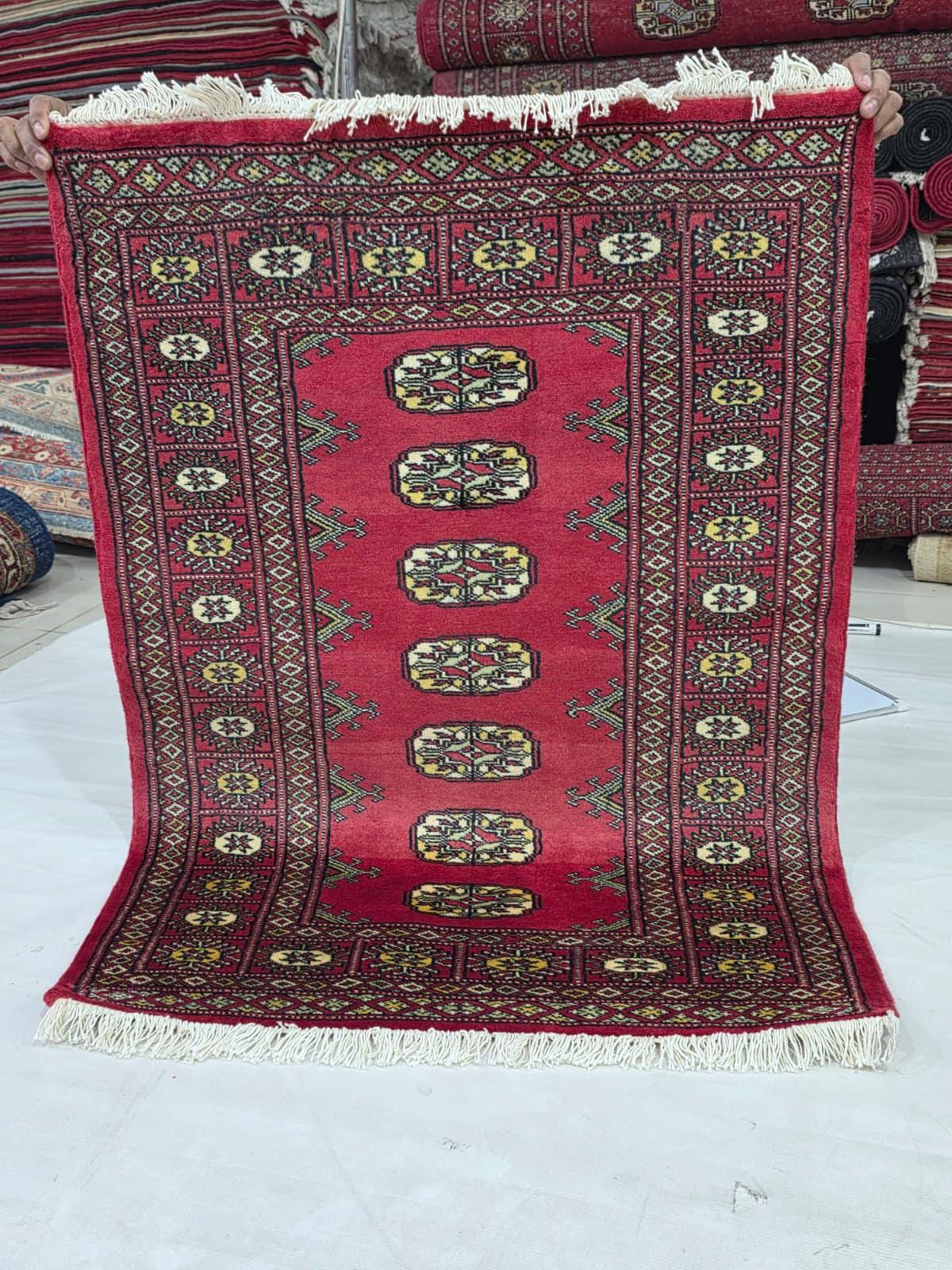 2.8 X 3.9 ft large Mori Bokhara rug, handmade veg dyes Cotton and Wool Rug, Pakhtaun Tribal rug in Red - Rugs for Living Room