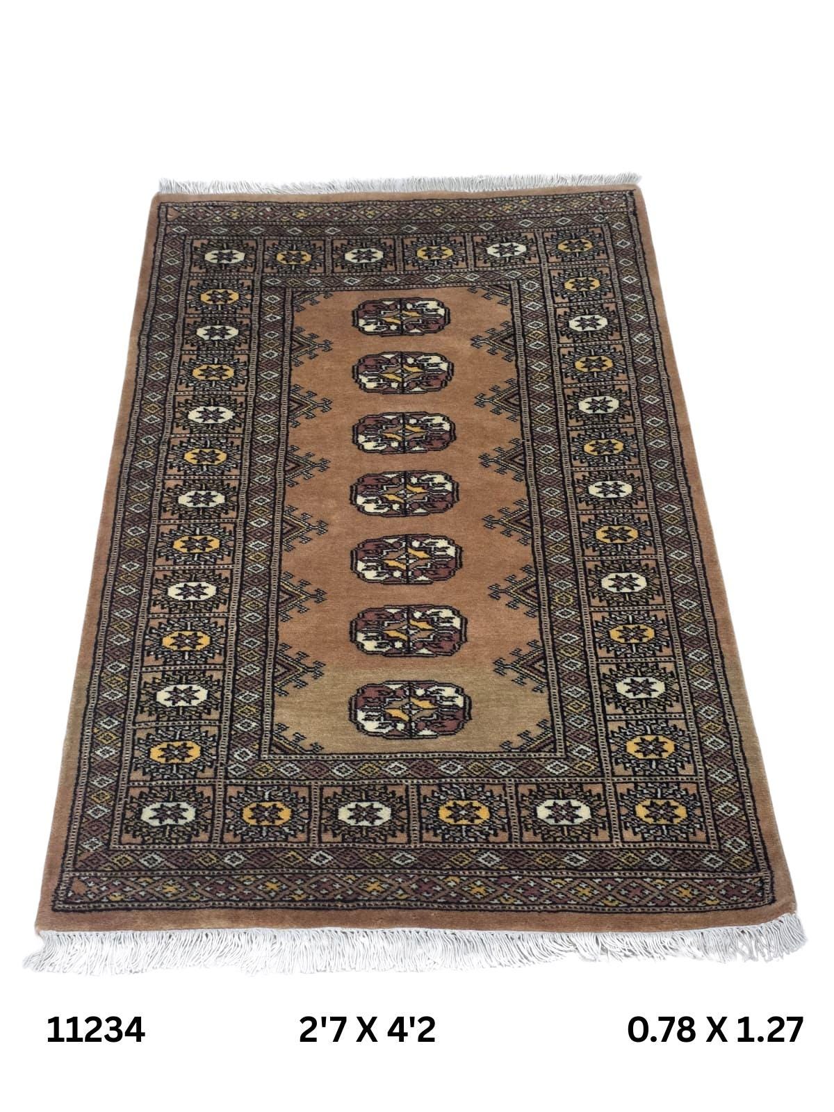 2.7 X 4.2 ft large Mori Bokhara rug, handmade veg dyes Cotton and Wool Rug, Pakhtaun Tribal rug in Brown - Rugs for Living Room