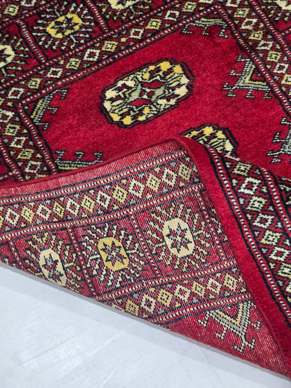 2.7 X 4.0 ft large Mori Bokhara rug, handmade veg dyes Cotton and Wool Rug, Pakhtaun Tribal rug in Red - Rugs for Living Room