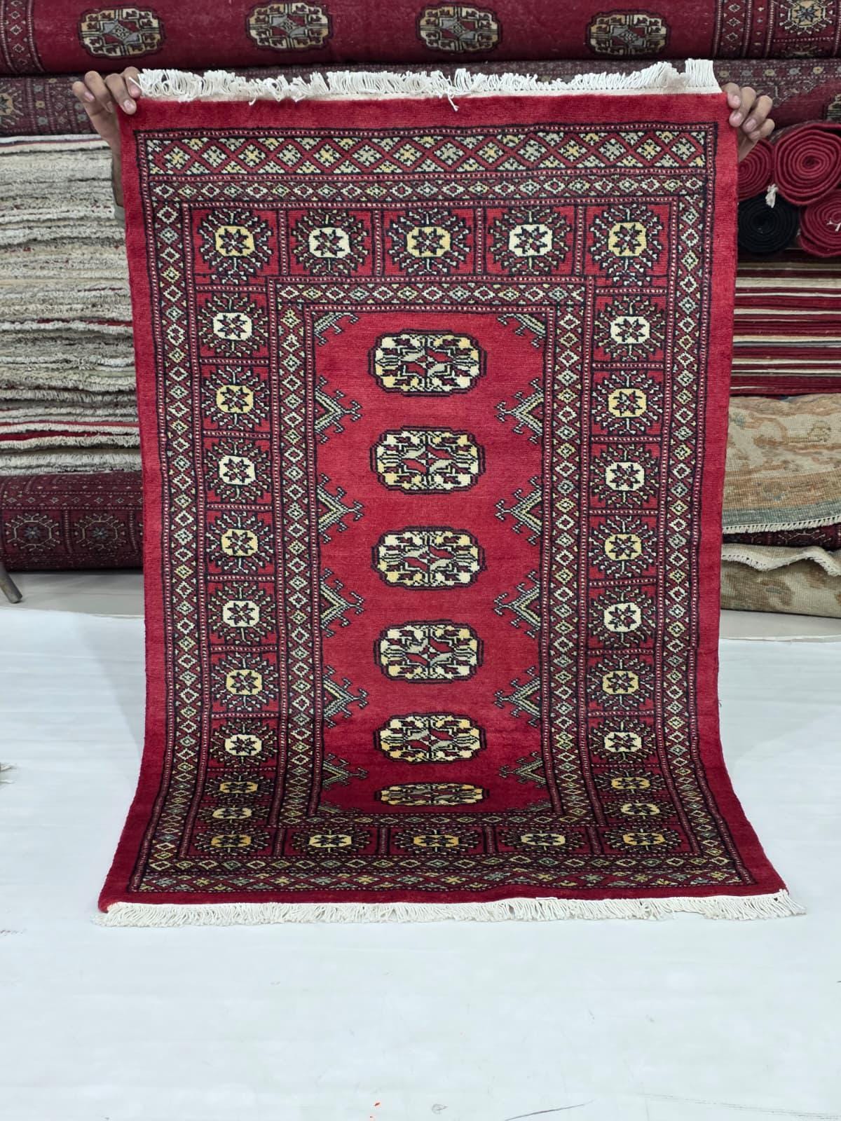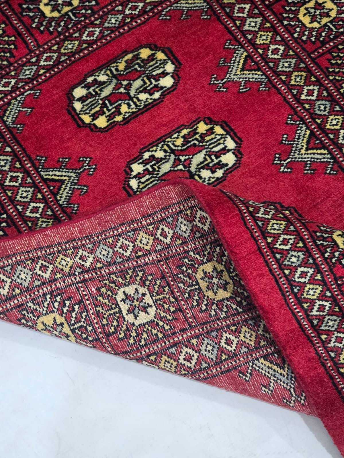 2.6 X 4.1 ft large Mori Bokhara rug, handmade veg dyes Cotton and Wool Rug, Pakhtaun Tribal rug in Red - Rugs for Living Room
