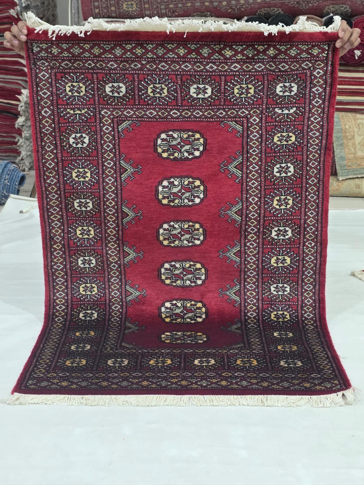 2.8 X 3.11 ft large Mori Bokhara rug, handmade veg dyes Cotton and Wool Rug, Pakhtaun Tribal rug in Red - Rugs for Living Room