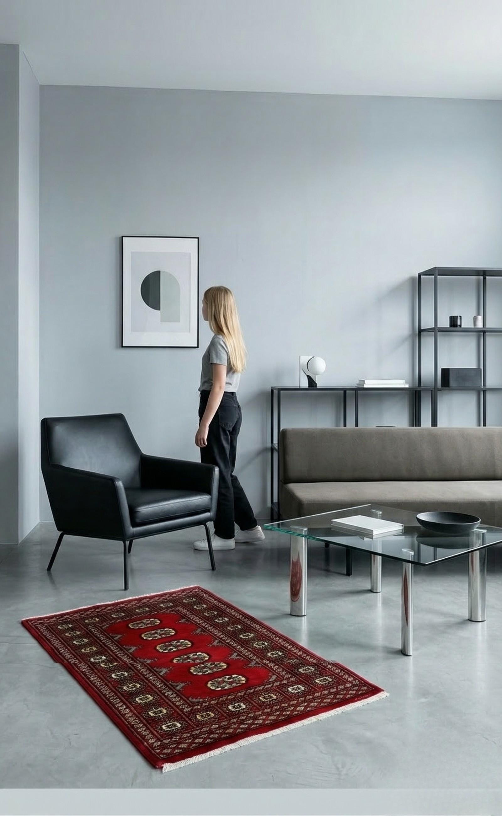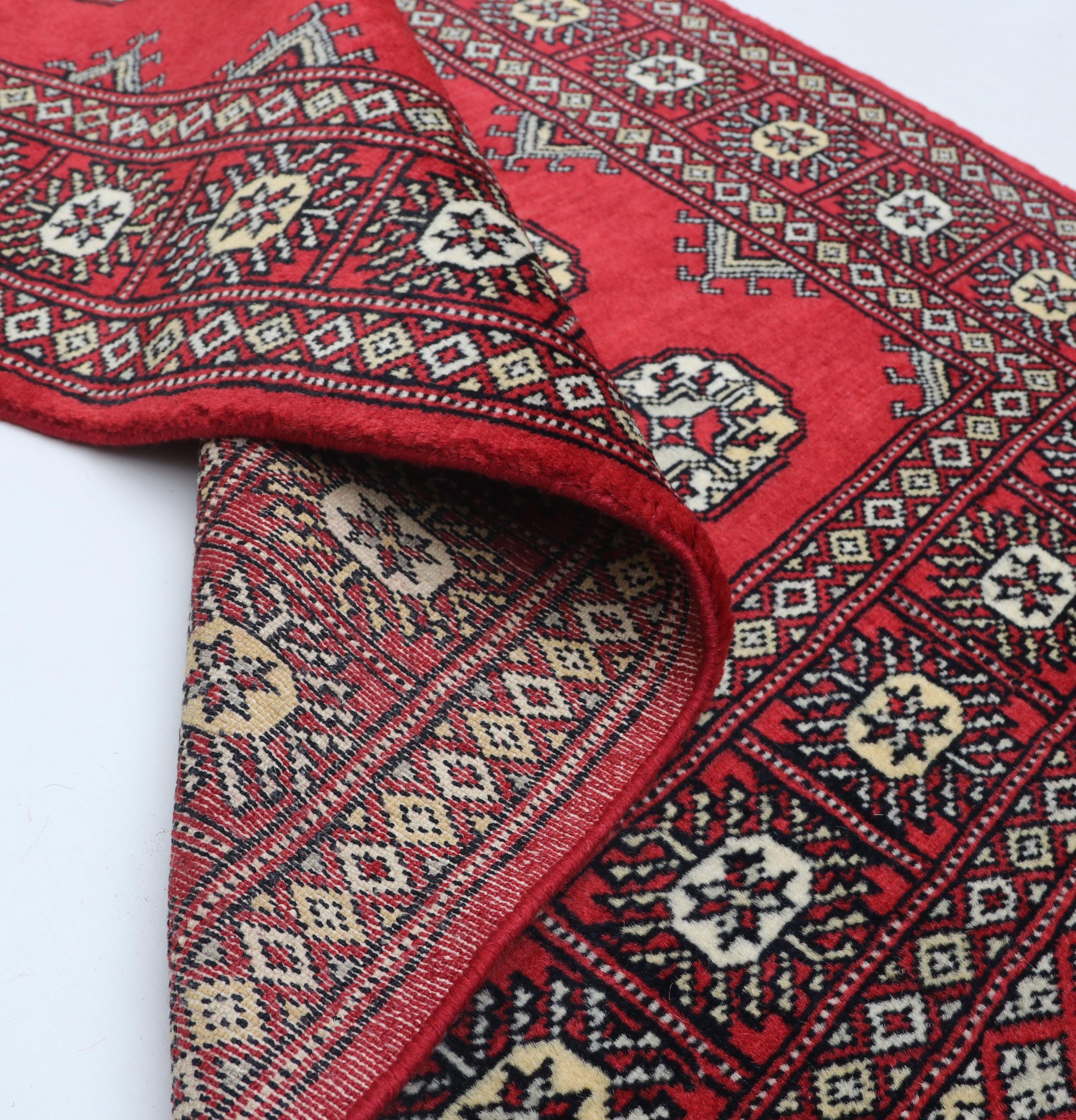 2.8 X 4.2 ft large Mori Bokhara rug, handmade veg dyes Cotton and Wool Rug, Pakhtaun Tribal rug in Red - Rugs for Living Room