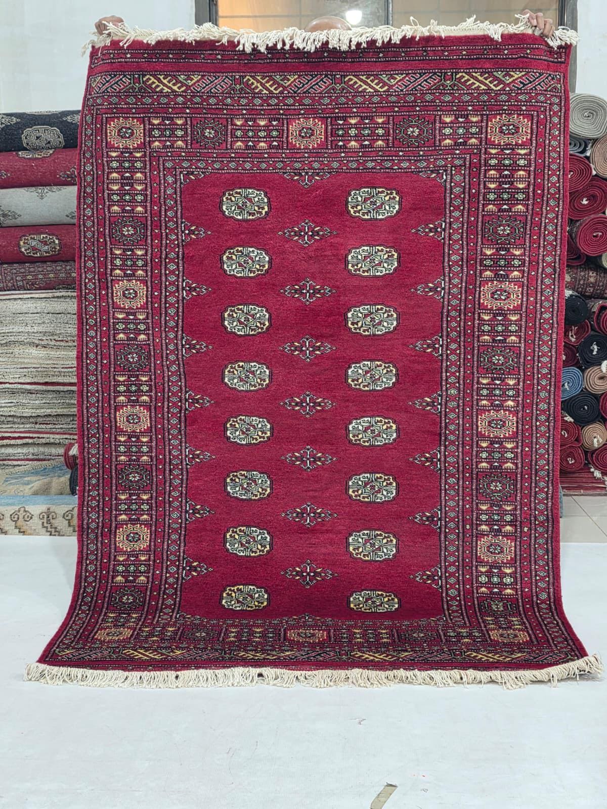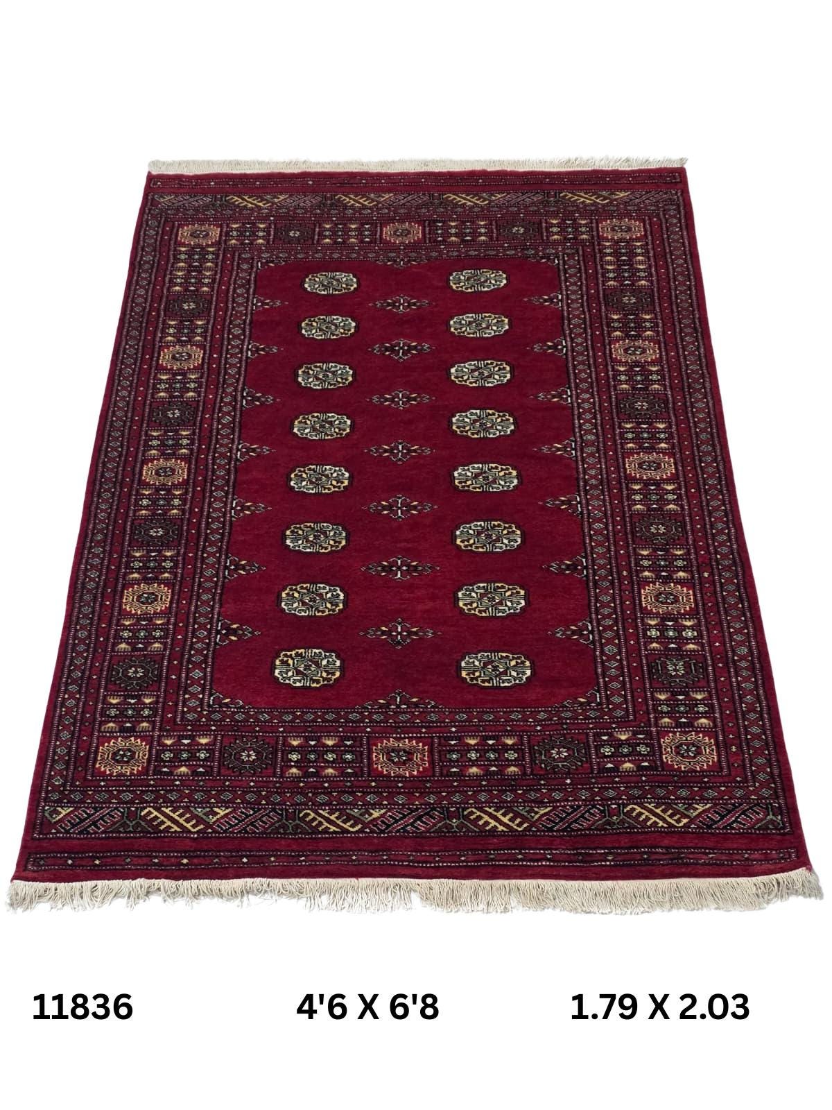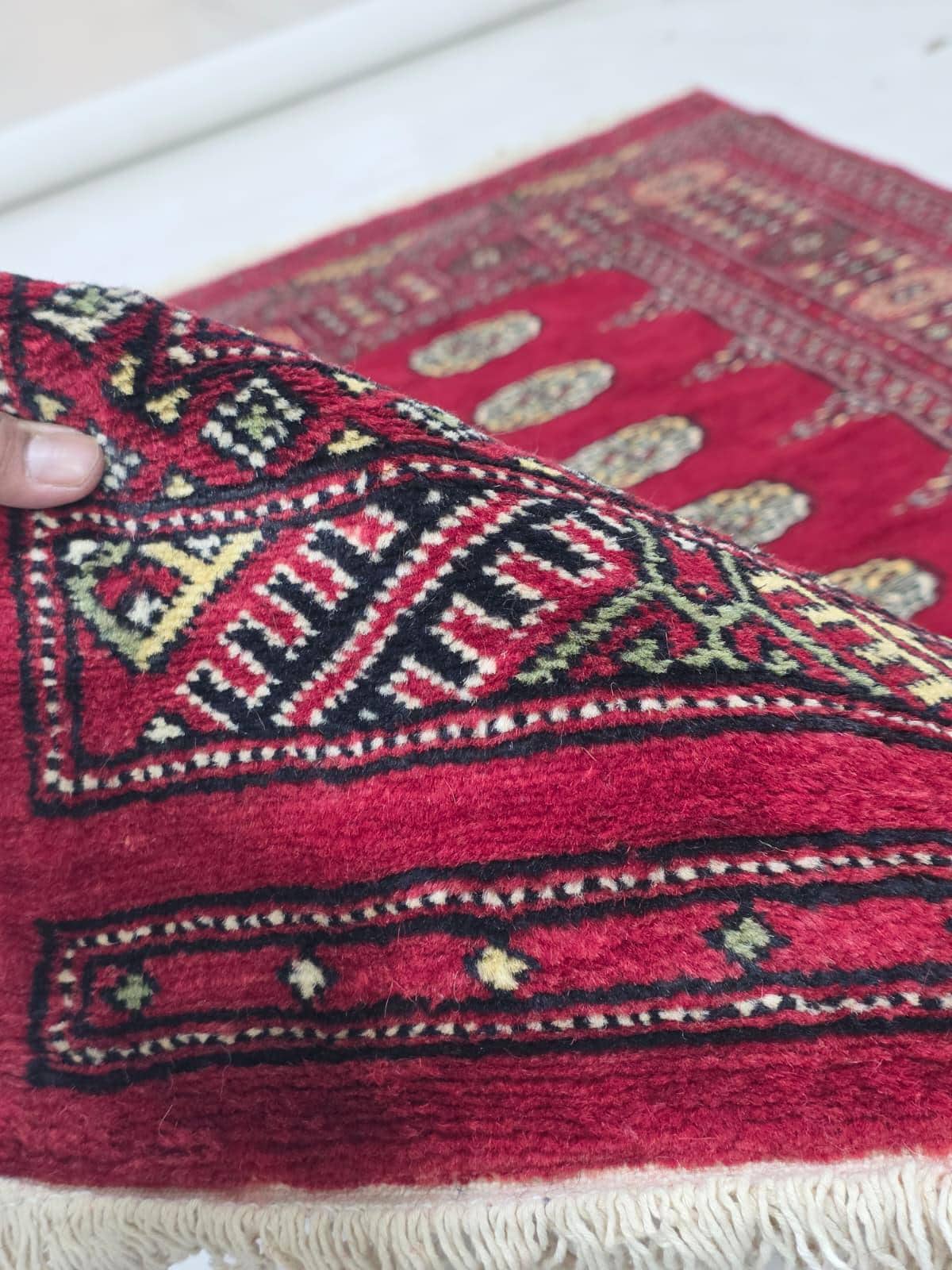 4.6 X 6.8 ft large Mori Bokhara rug, handmade veg dyes Cotton and Wool Rug, Pakhtaun Tribal rug in Red - Rugs for Living Room