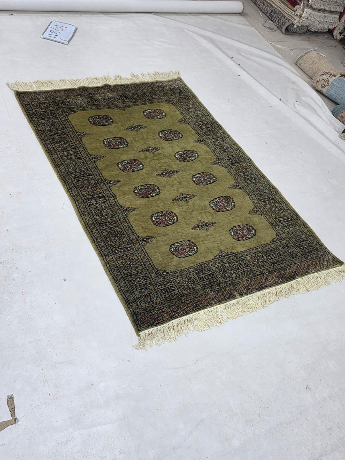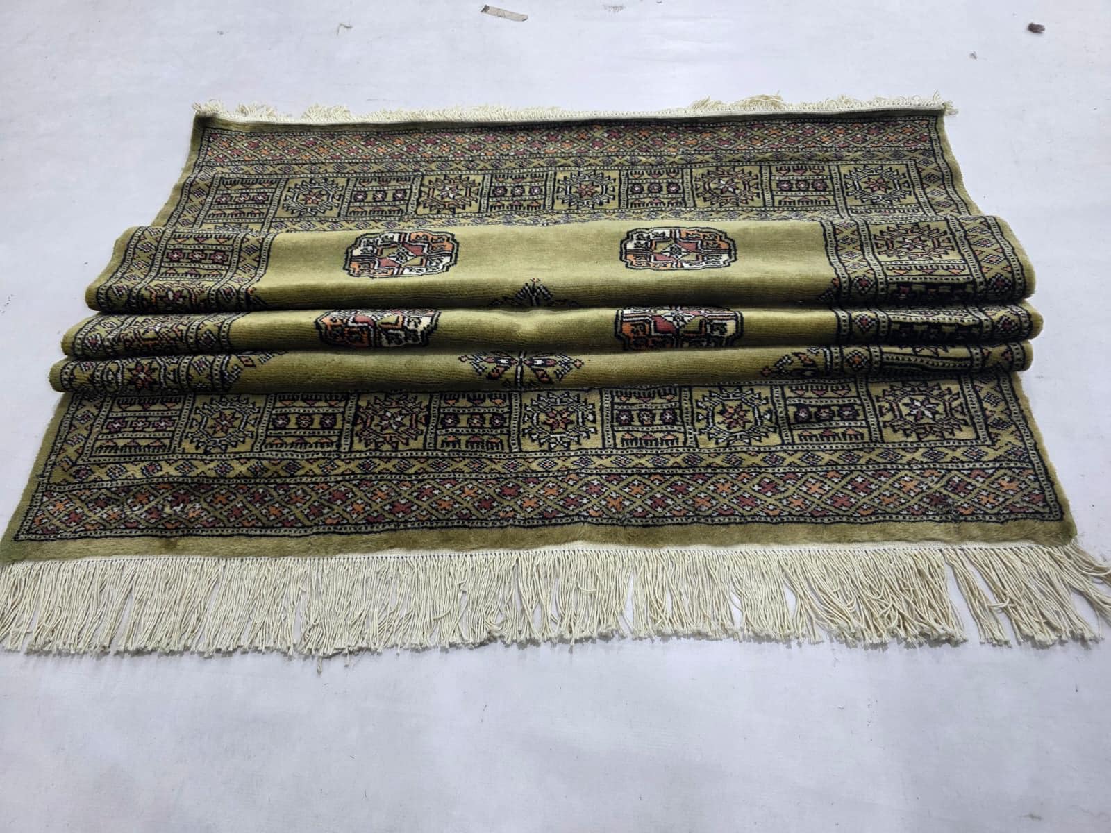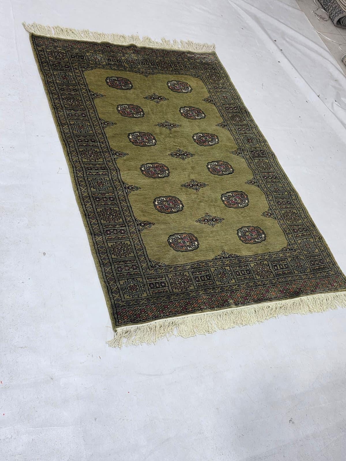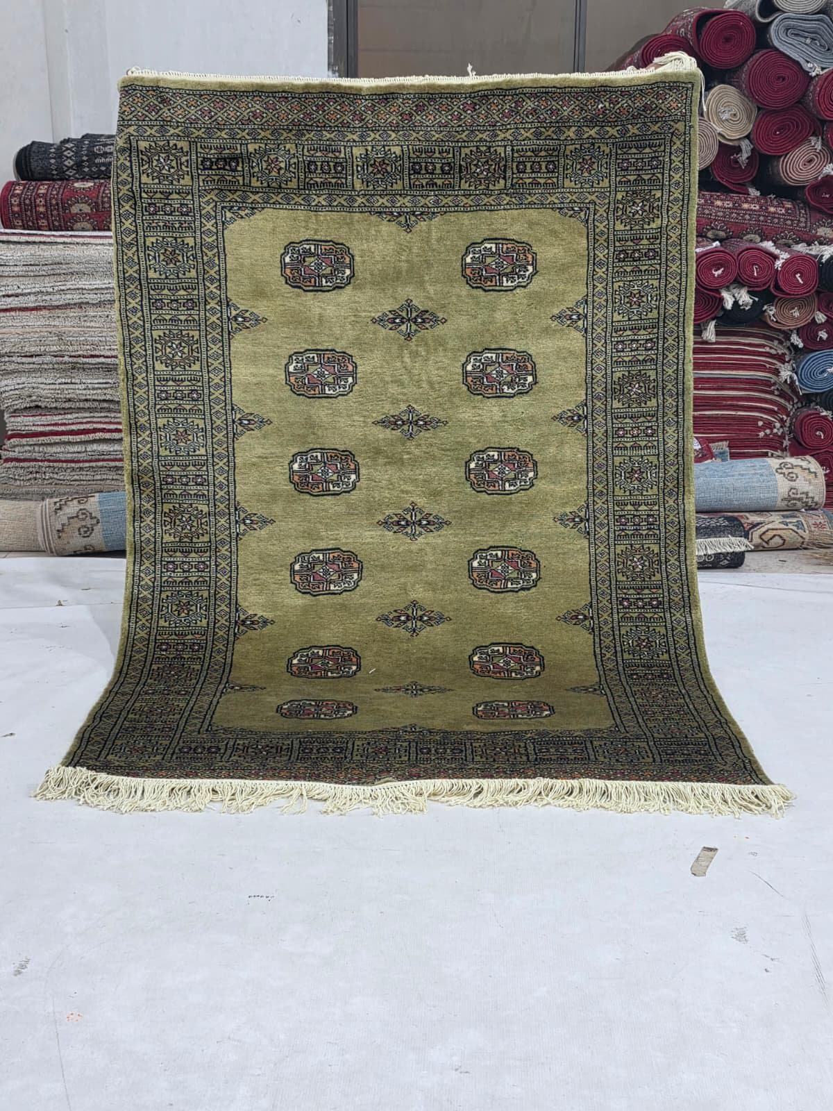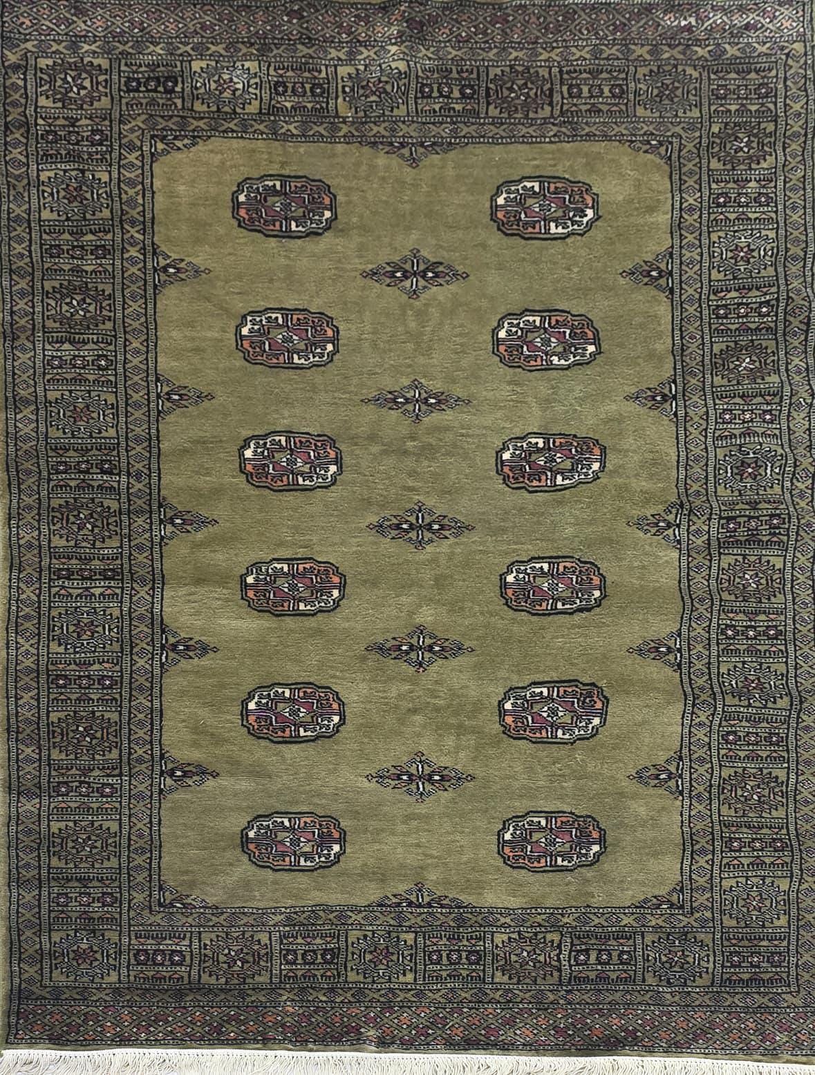 4.1 X 6.0 ft large Mori Bokhara rug, handmade veg dyes Cotton and Wool Rug, Pakhtaun Tribal rug in Green - Rugs for Living Room