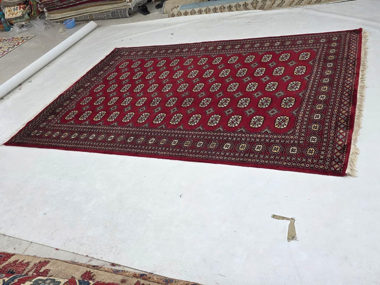 5.8 X 8.3 ft large Mori Bokhara rug, handmade veg dyes Cotton and Wool Rug, Pakhtaun Tribal rug in Red - Rugs for Living Room