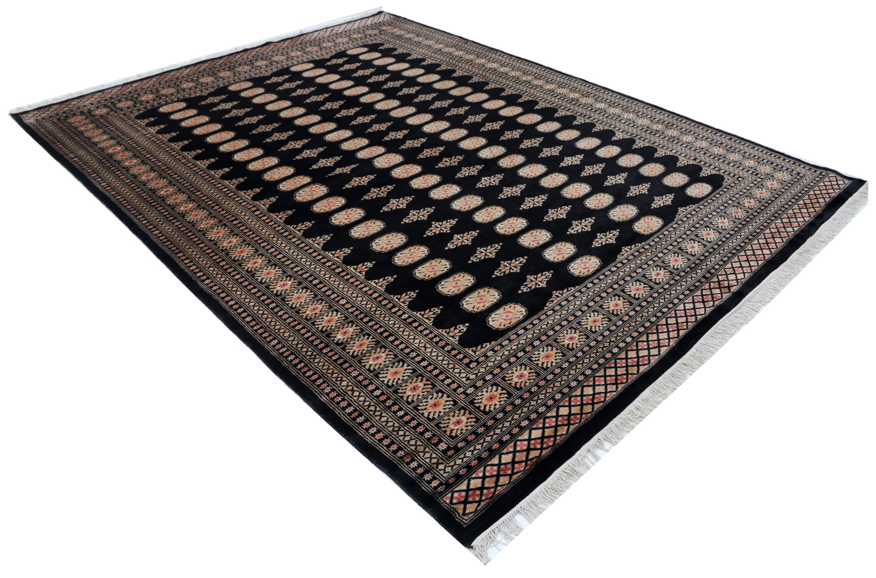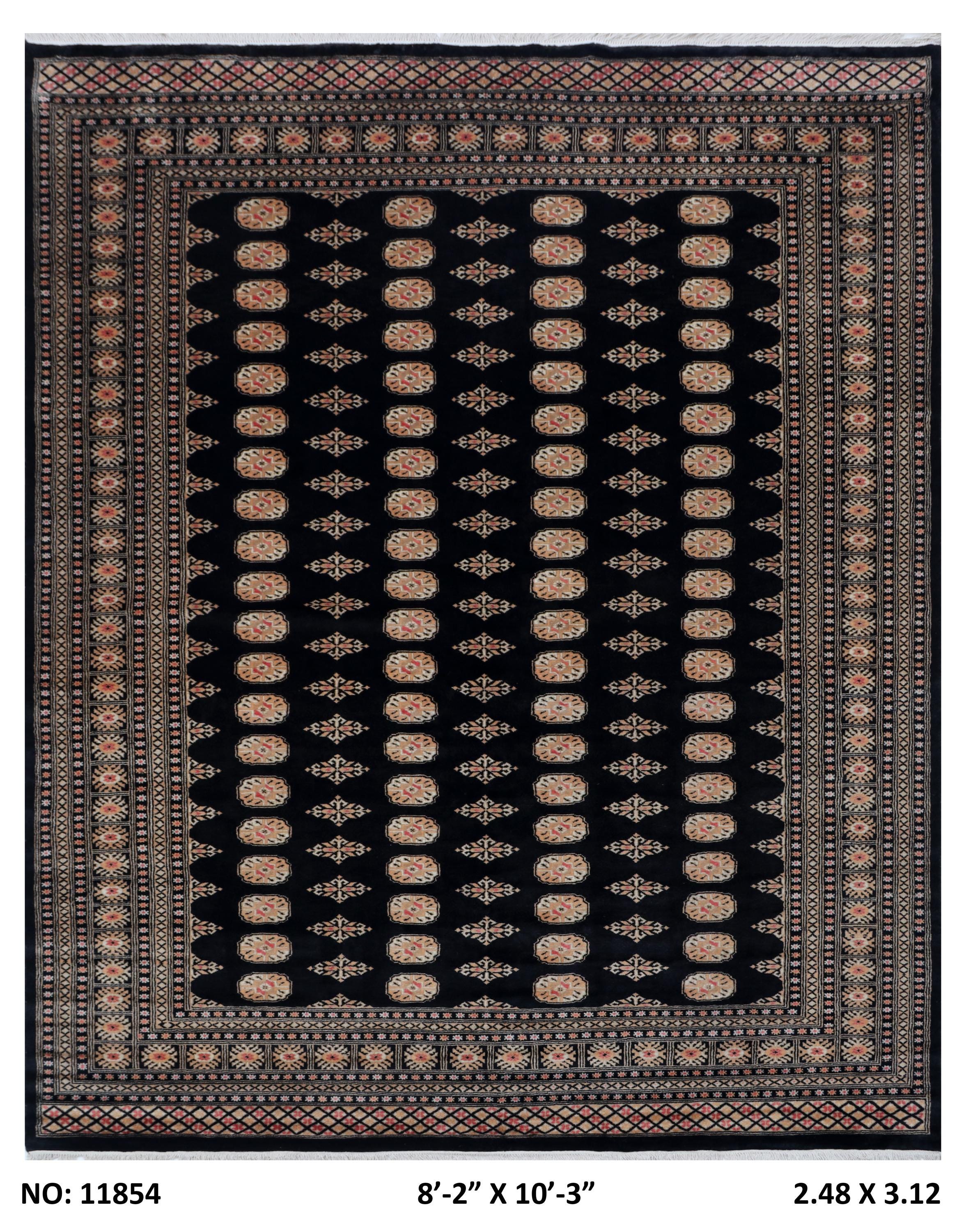 8.2 X 10.3 ft large Mori Bokhara rug, handmade veg dyes Cotton and Wool Rug, Pakhtaun Tribal rug in Black - Rugs for Living Room
