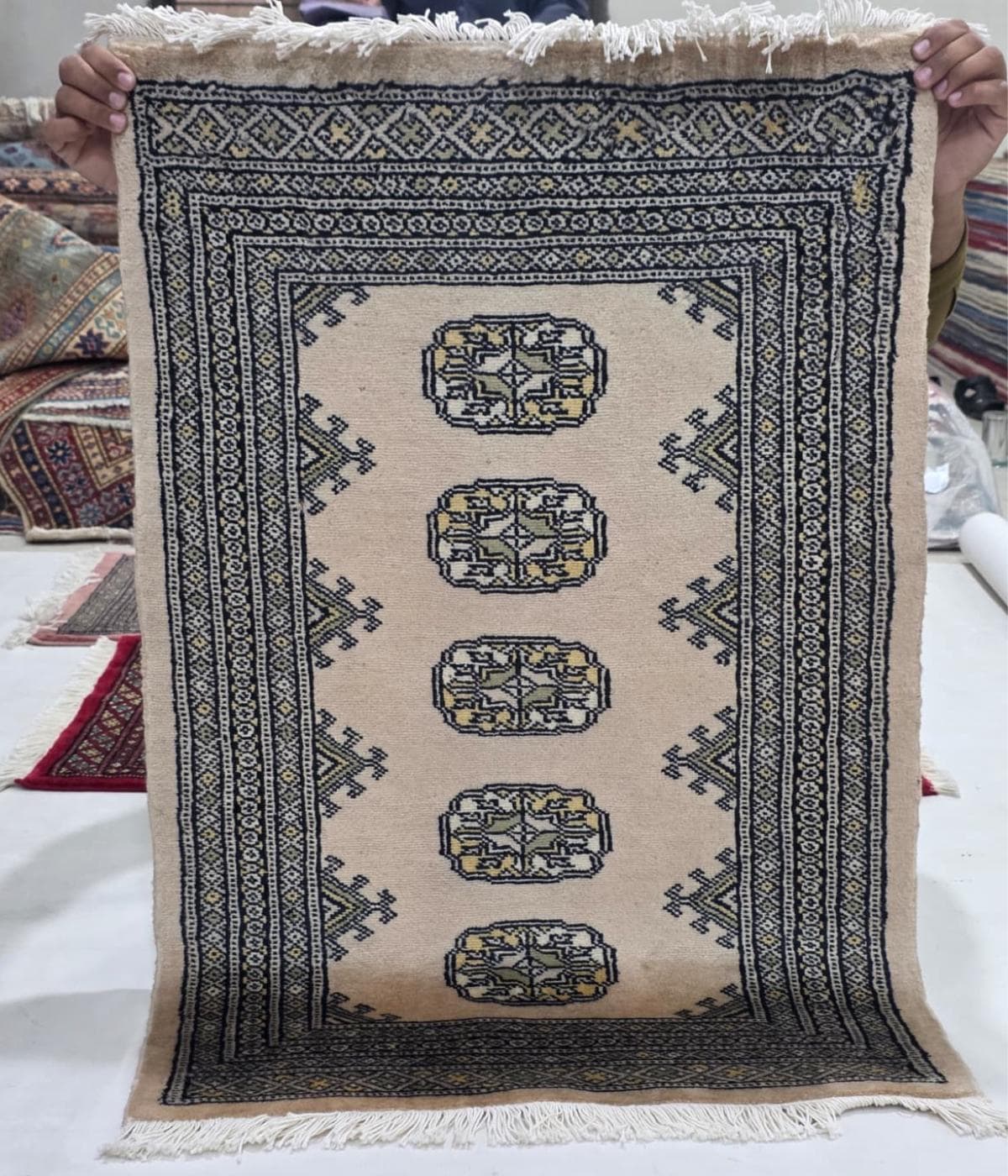 2.1 X 3.2 ft large Mori Bokhara rug, handmade veg dyes Cotton and Wool Rug, Pakhtun Tribal rug in Beige - Rugs for Living Room