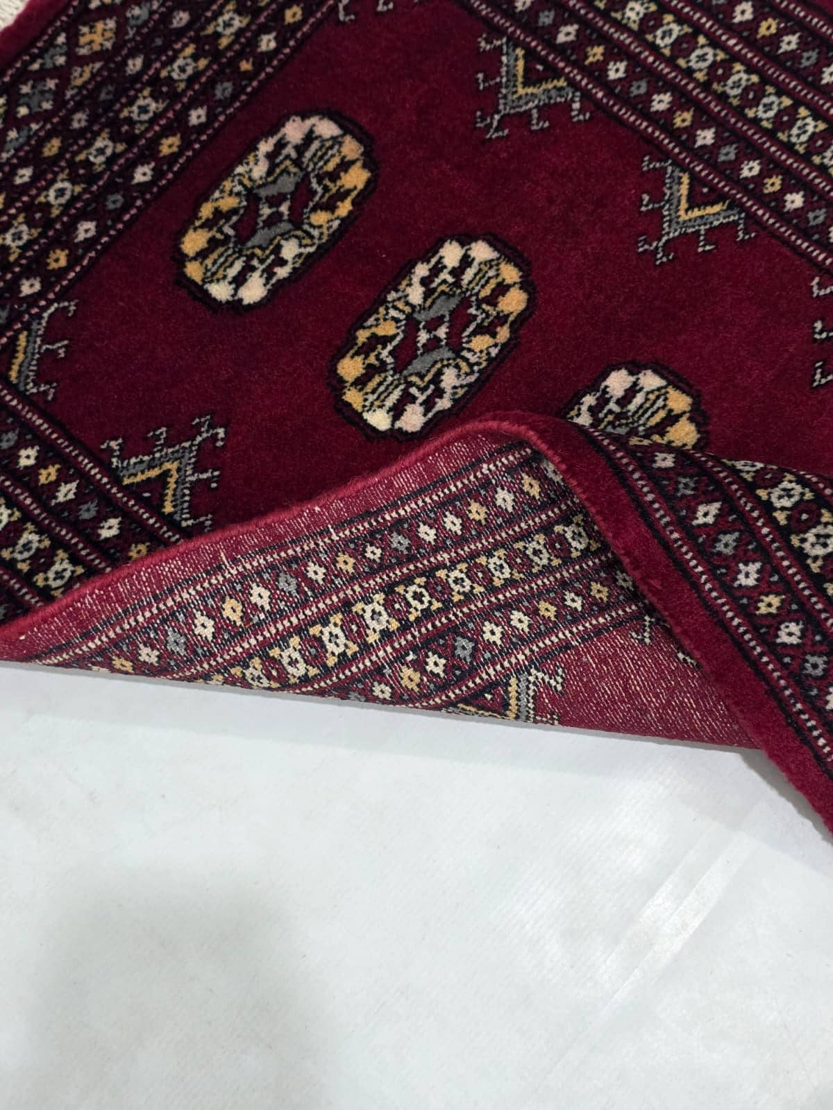 2.0 X 2.11 ft large Mori Bokhara rug, handmade veg dyes Cotton and Wool Rug, Pakhtun Tribal rug in Red - Rugs for Living Room