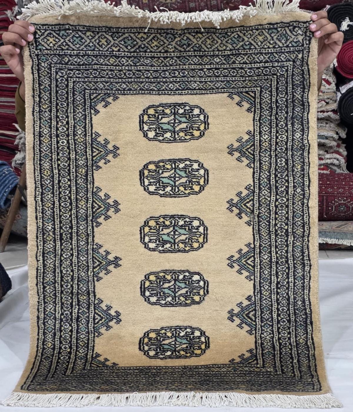 2.1 X 3.1 ft large Mori Bokhara rug, handmade veg dyes Cotton and Wool Rug, Pakhtun Tribal rug in Beige - Rugs for Living Room
