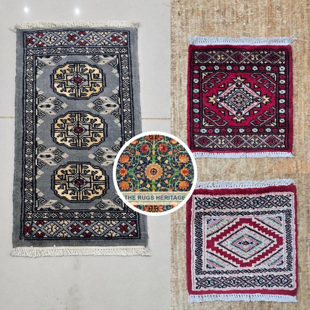 2 pieces 1 X 1 ft and1 piece 2 X 1 ft small 3 total pieces Mori Bokhara rugs, handmade veg dyes Cotton and Wool Rug, Pakhtun Tribal rug in 4 different varients - Rugs for Living Room