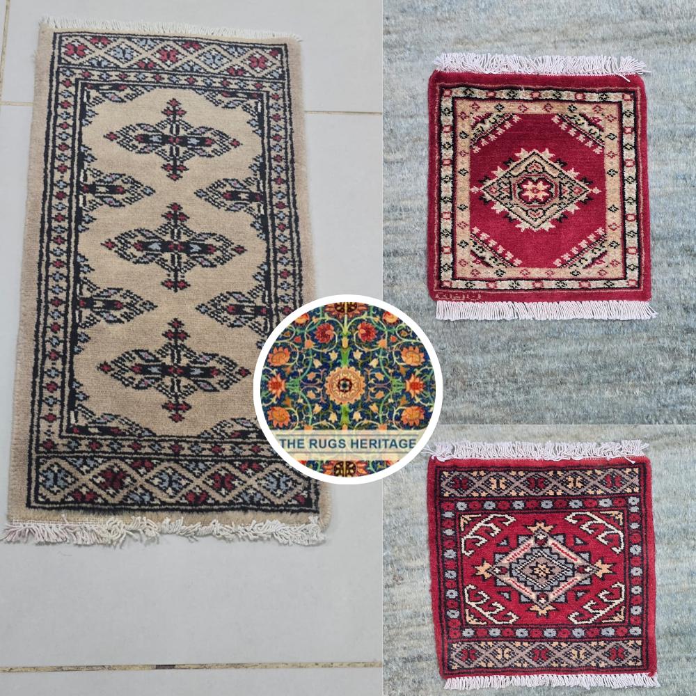 2 pieces 1 X 1 ft and1 piece 2 X 1 ft small 3 total pieces Mori Bokhara rugs, handmade veg dyes Cotton and Wool Rug, Pakhtun Tribal rug in 4 different varients - Rugs for Living Room