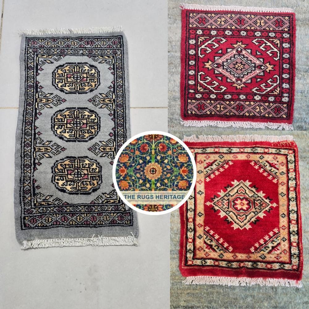 2 pieces 1 X 1 ft and1 piece 2 X 1 ft small 3 total pieces Mori Bokhara rugs, handmade veg dyes Cotton and Wool Rug, Pakhtun Tribal rug in 4 different varients - Rugs for Living Room