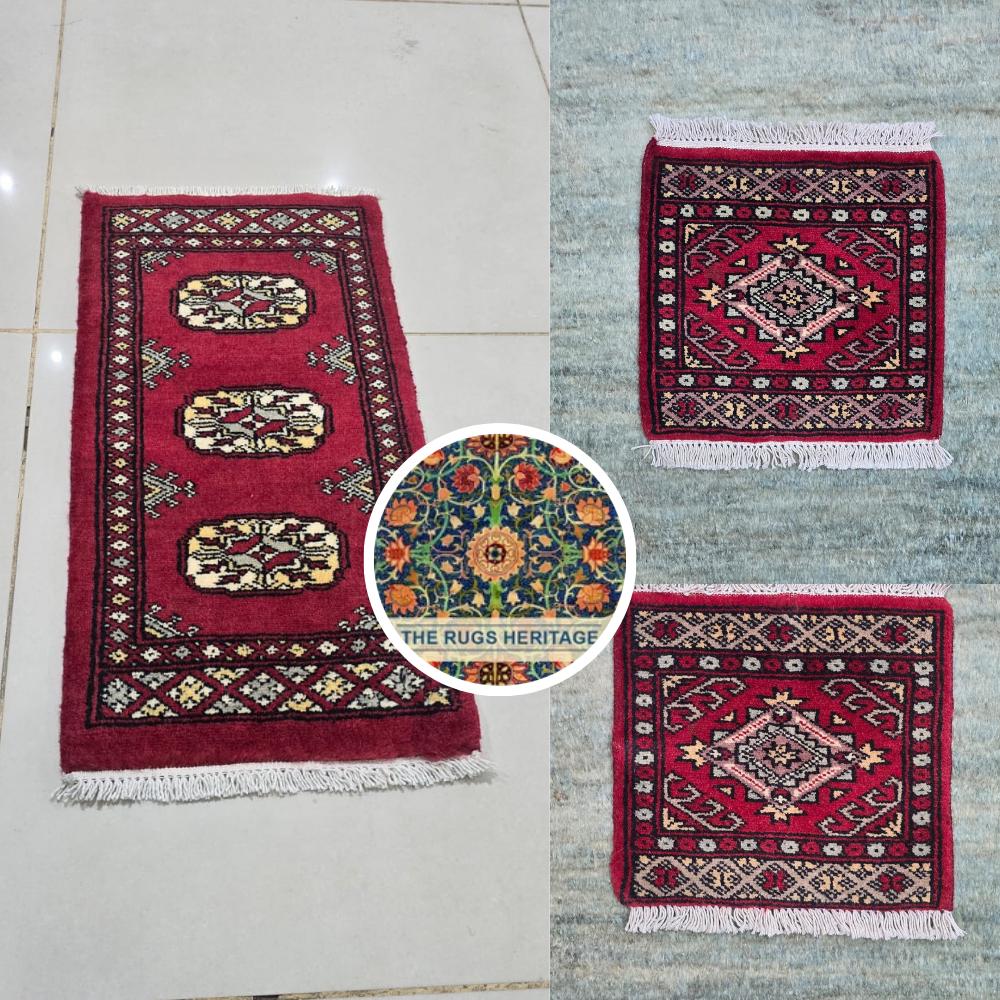 2 pieces 1 X 1 ft and1 piece 2 X 1 ft small 3 total pieces Mori Bokhara rugs, handmade veg dyes Cotton and Wool Rug, Pakhtun Tribal rug in 4 different varients - Rugs for Living Room