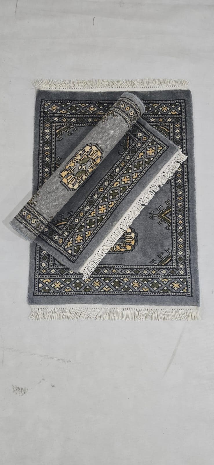 These are beautiful Gray rugs, hand-knotted with 100% Cotton and Wool .